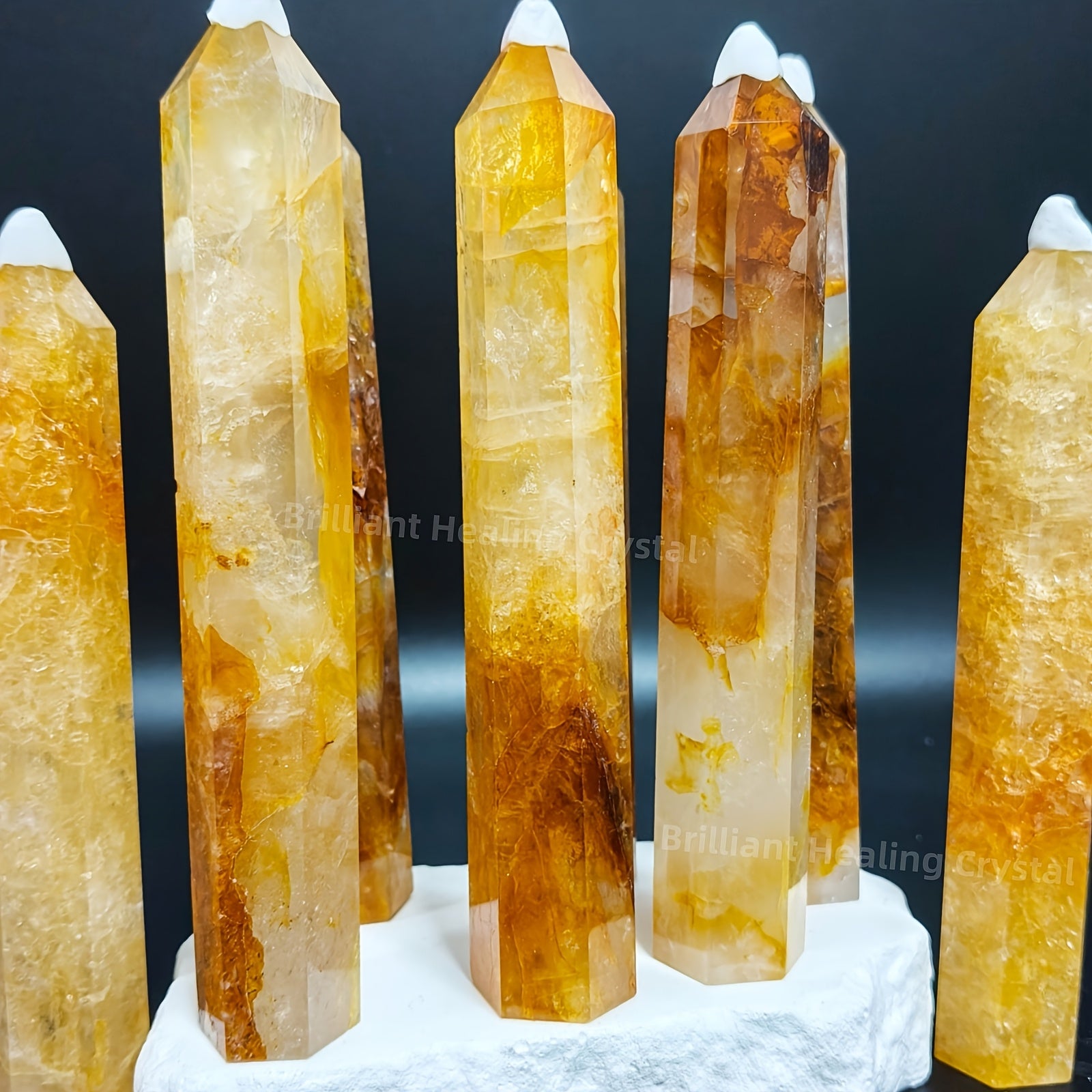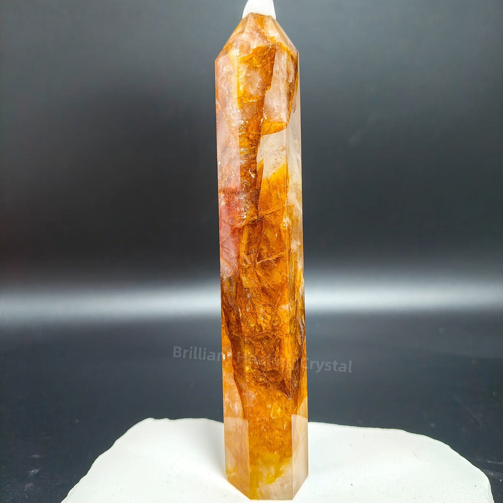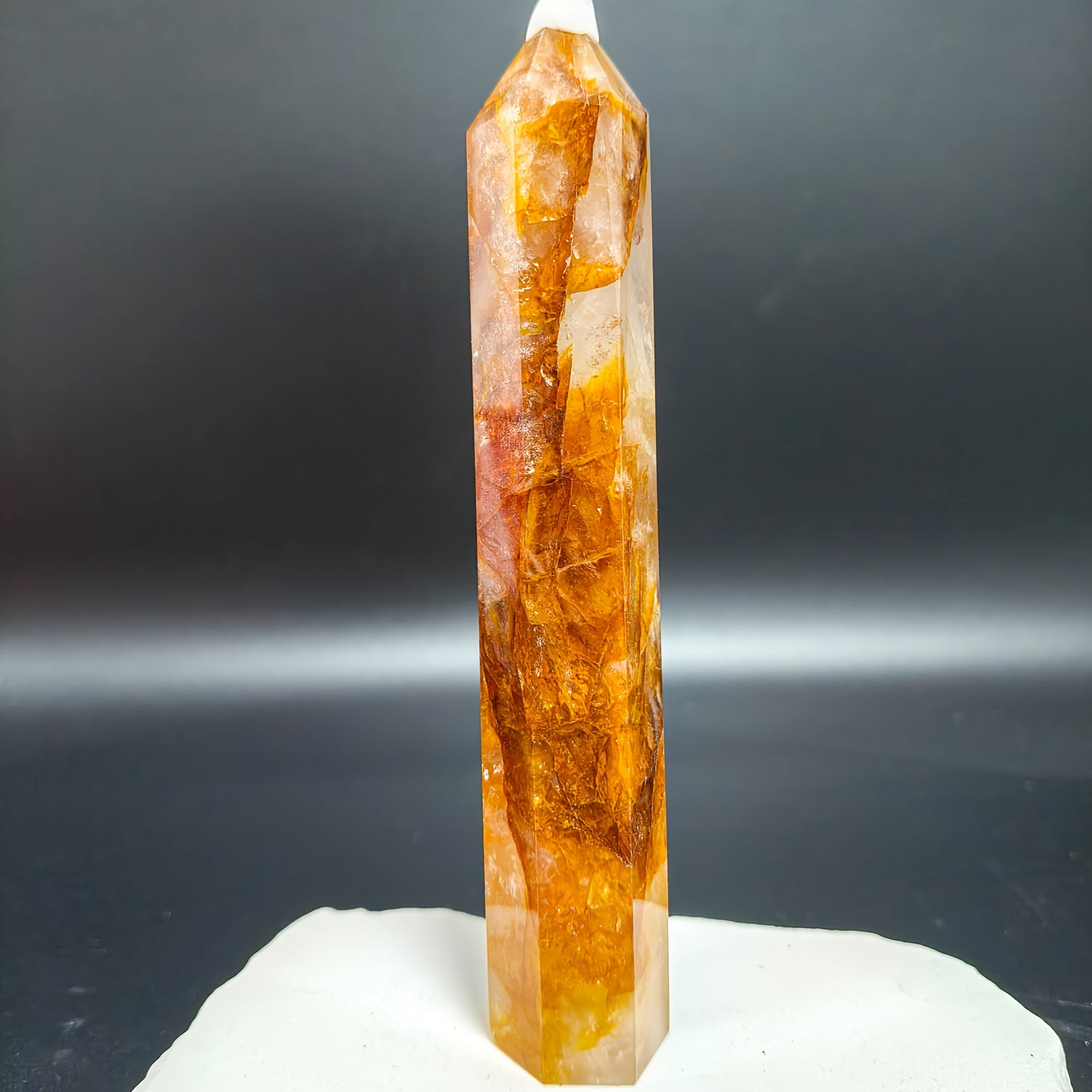Bring the healing power of Golden Healer Quartz into your space with this boho style polished wand. Perfect for home decor and spiritual practices.