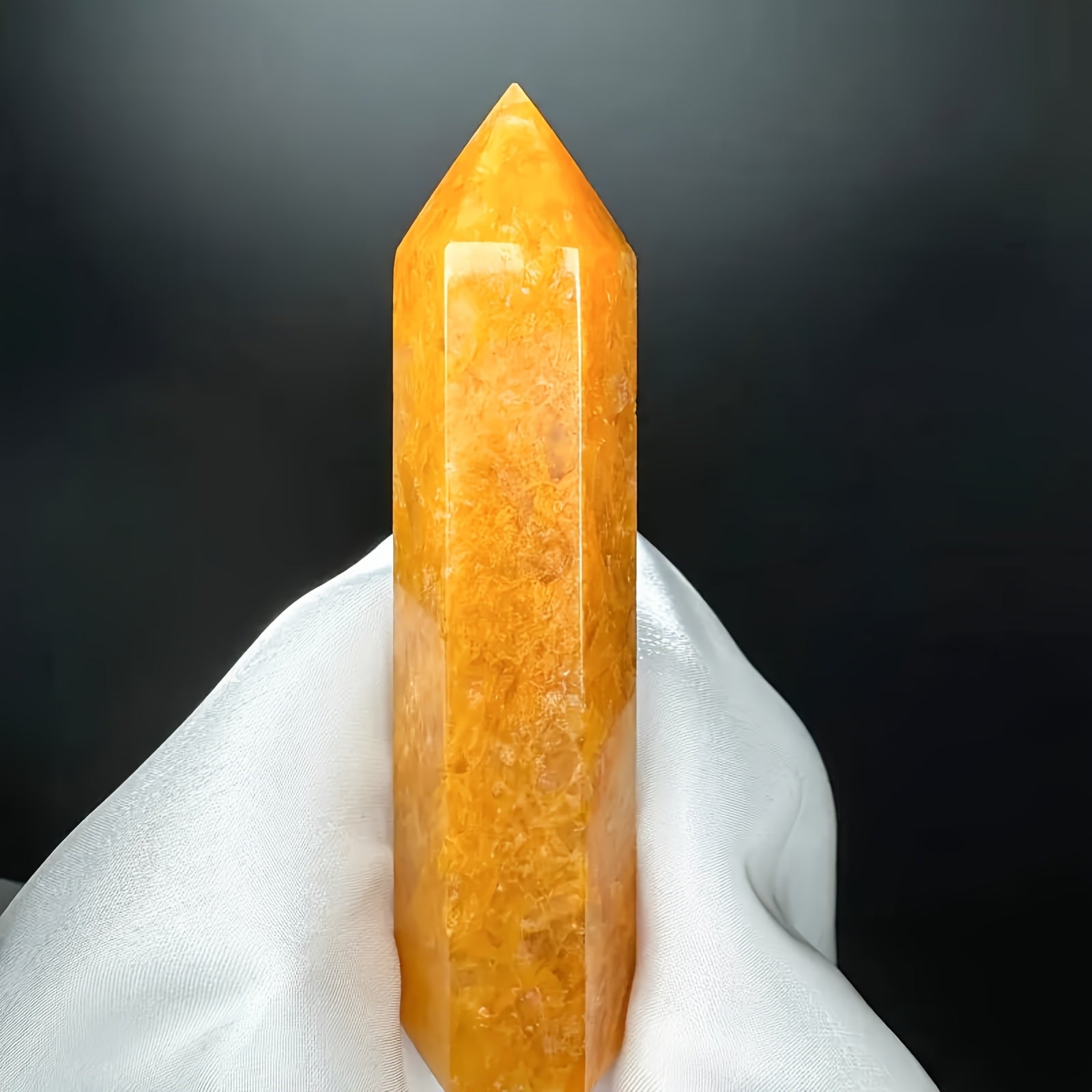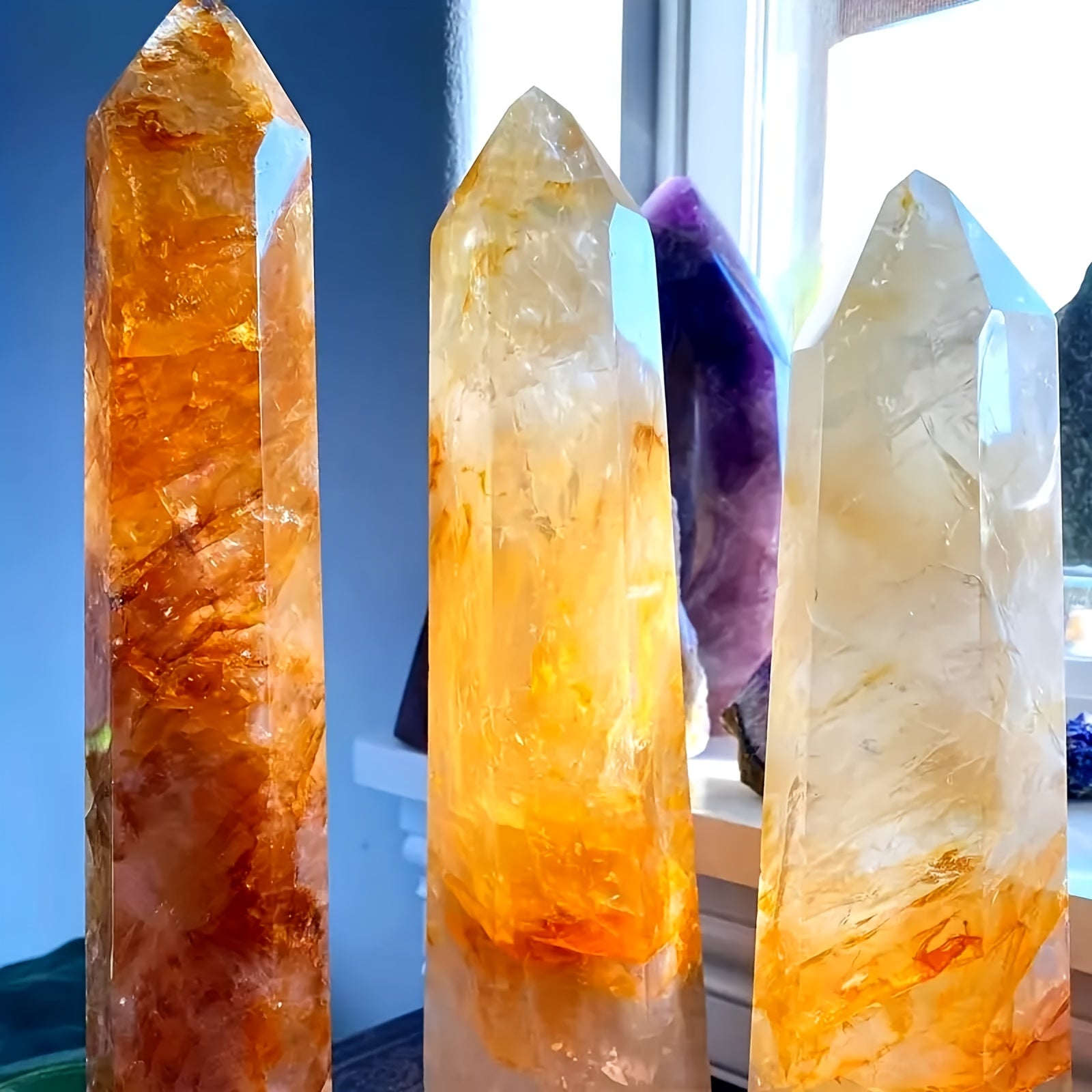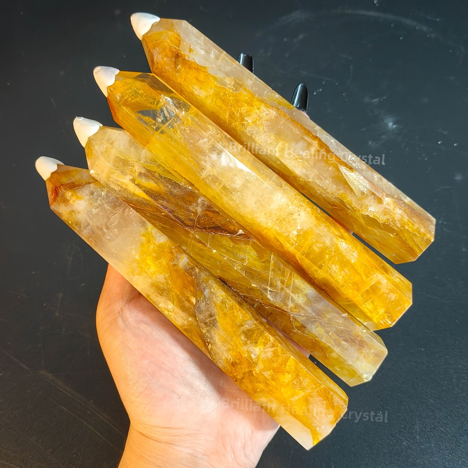 Bring the healing power of Golden Healer Quartz into your space with this boho style polished wand. Perfect for home decor and spiritual practices.