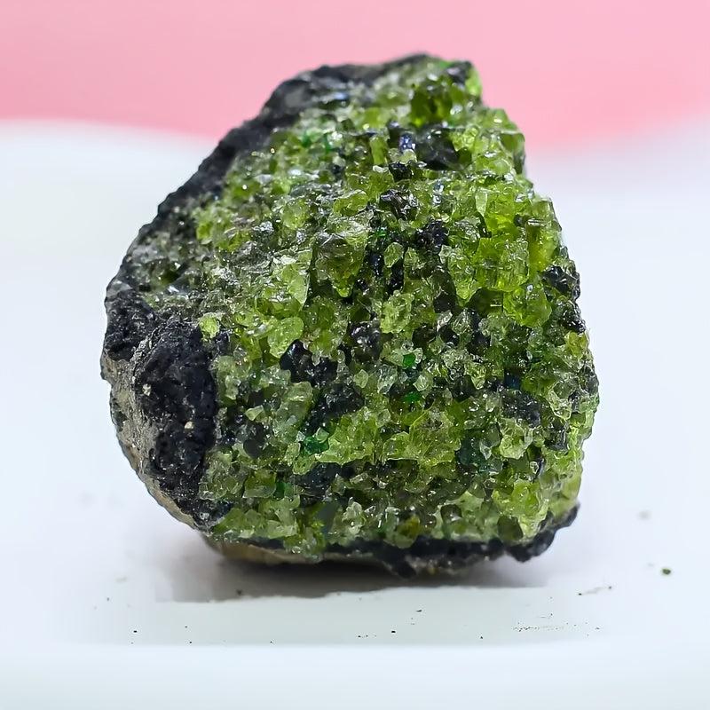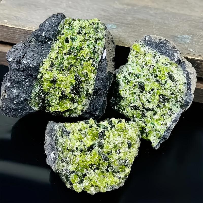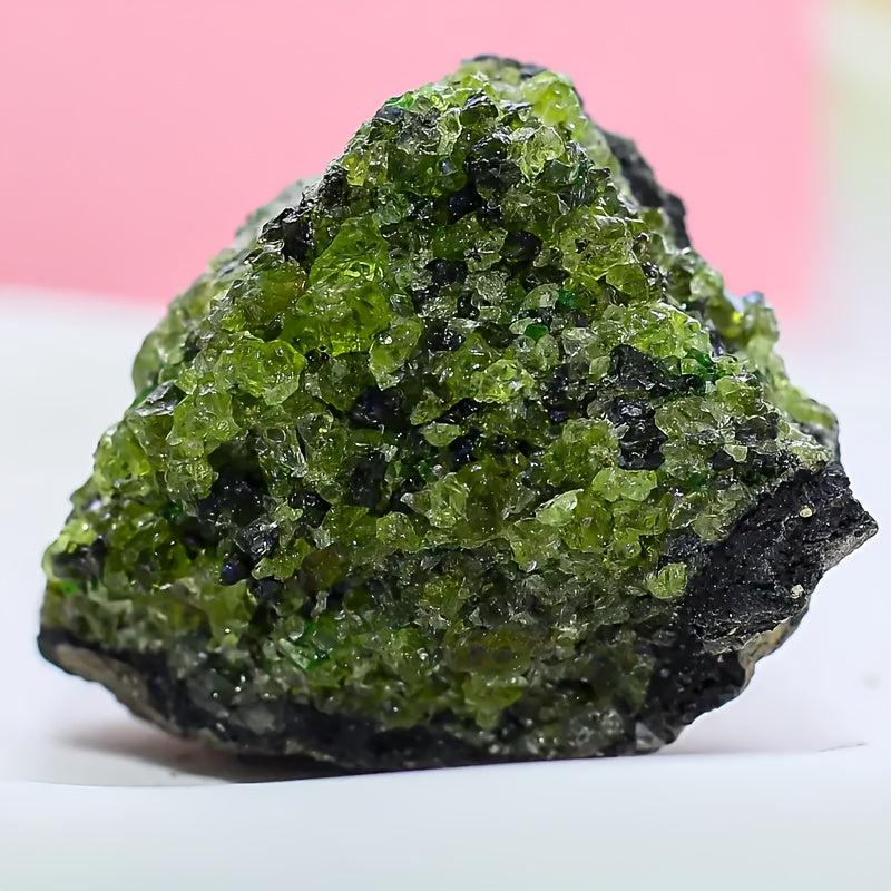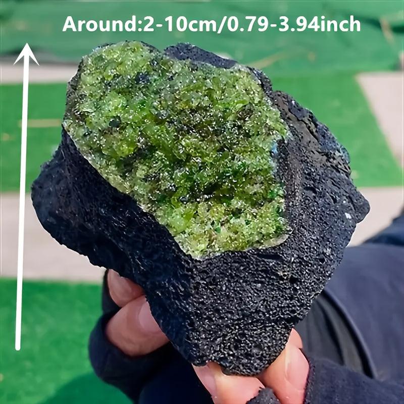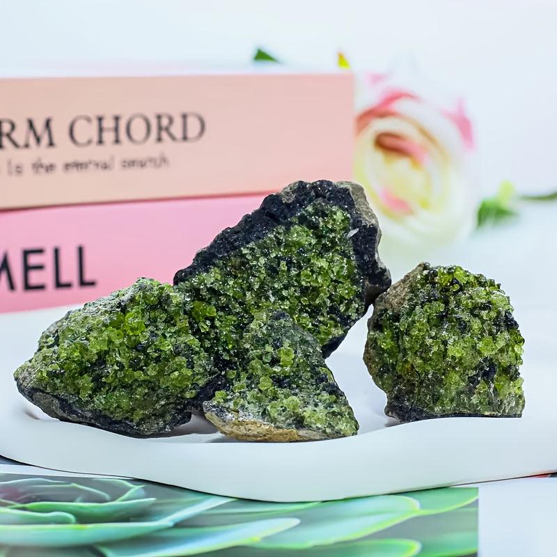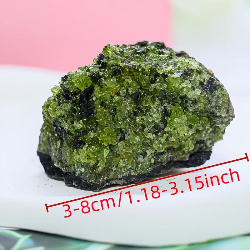 Add a touch of bohemian style to your home decor with this natural olivine cluster featuring vibrant green crystals. Perfect for Easter and Valentine's gifts or unique collections.
