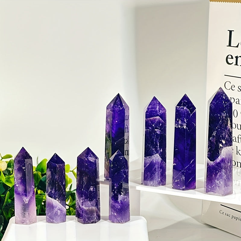 This crystal point hexagonal column is perfect for enhancing the decor of your home or office. Its unique design and crystal material add an elegant touch to any space.
