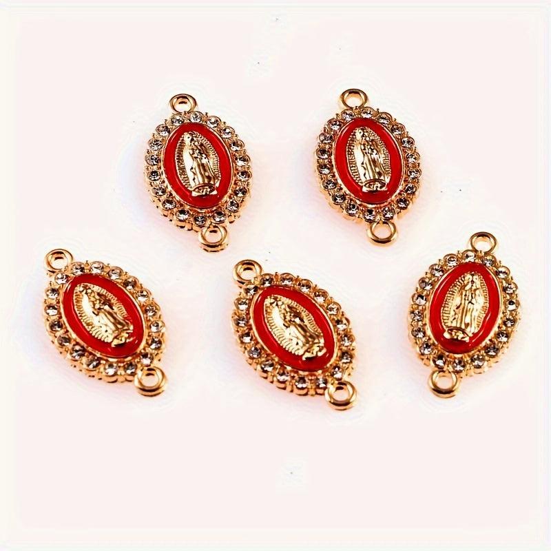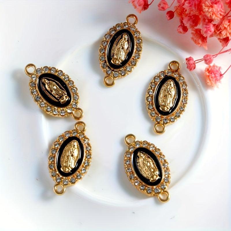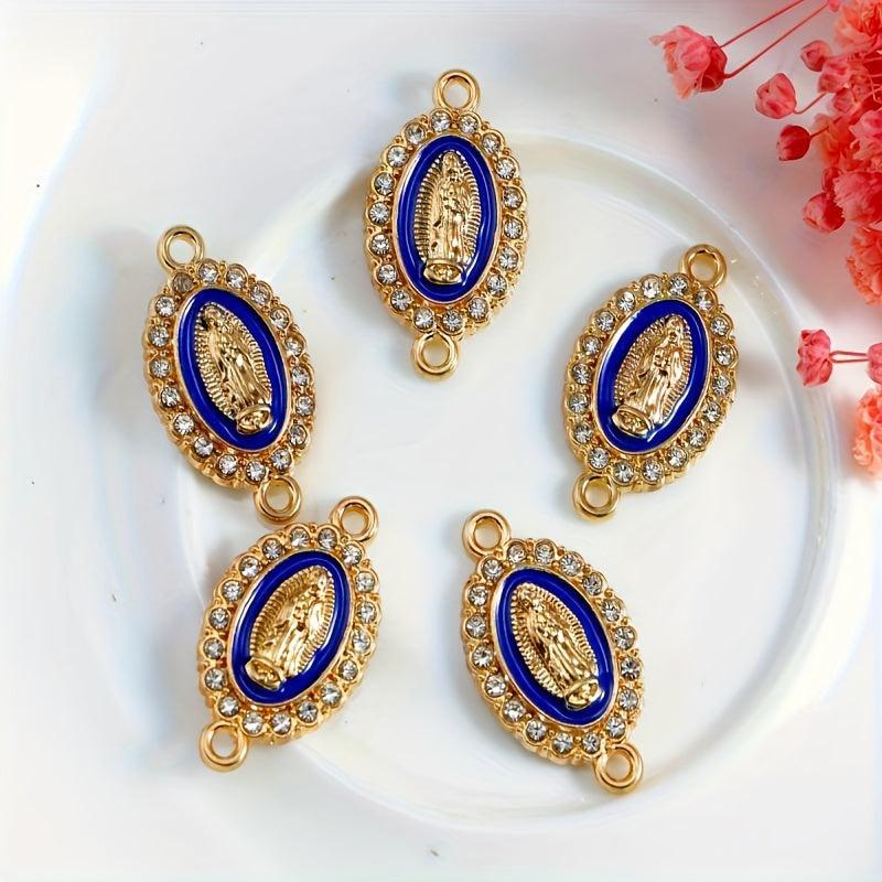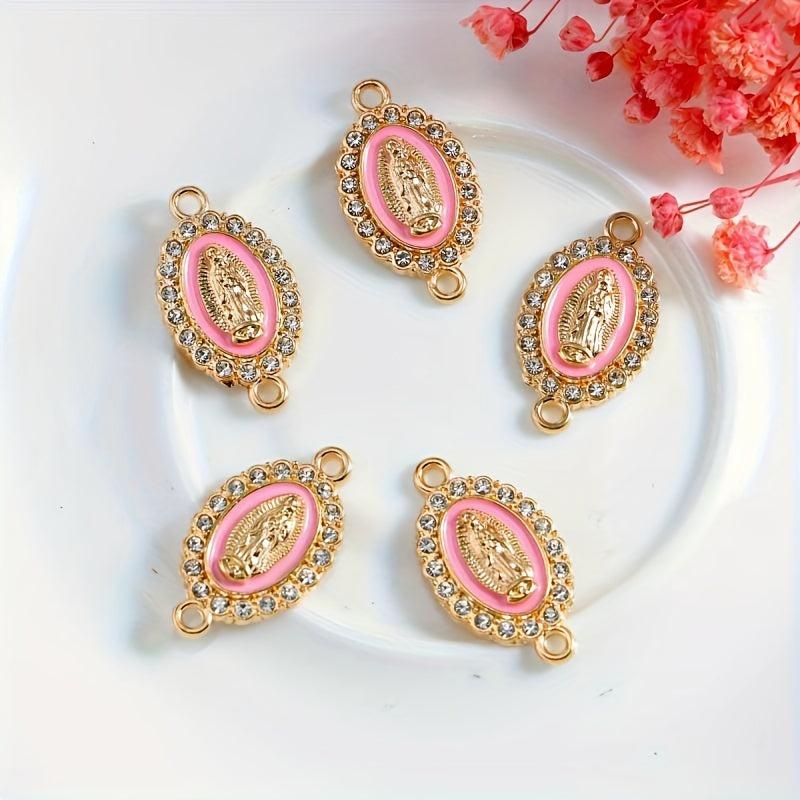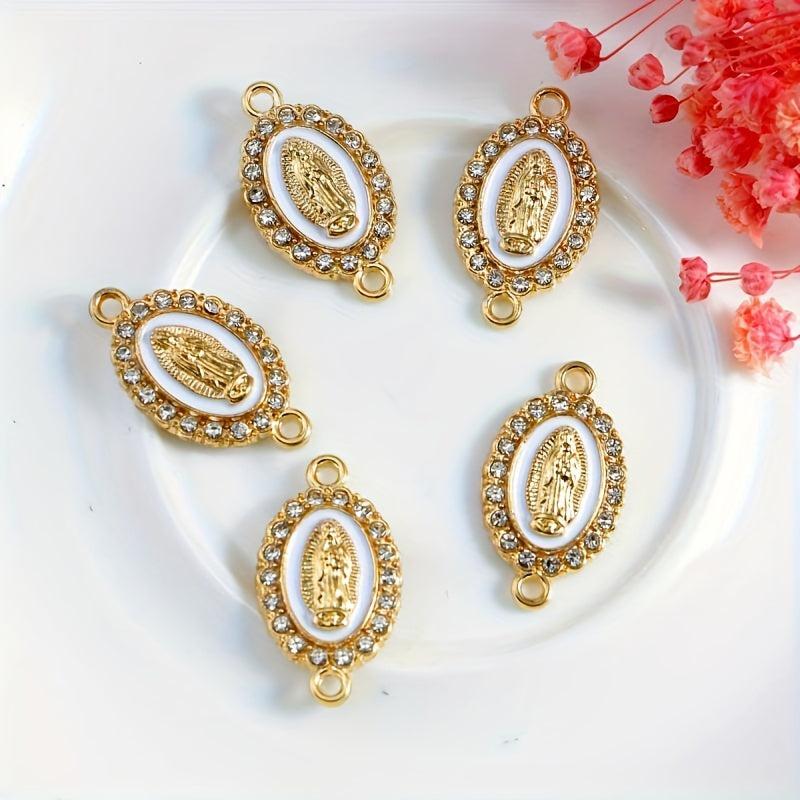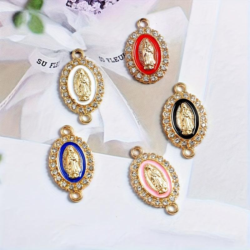 Create stunning jewelry with this pack of 5 double pendant geometric oval sets featuring Saint figure enamel drips. Use the water alloy accessories for added charm.
