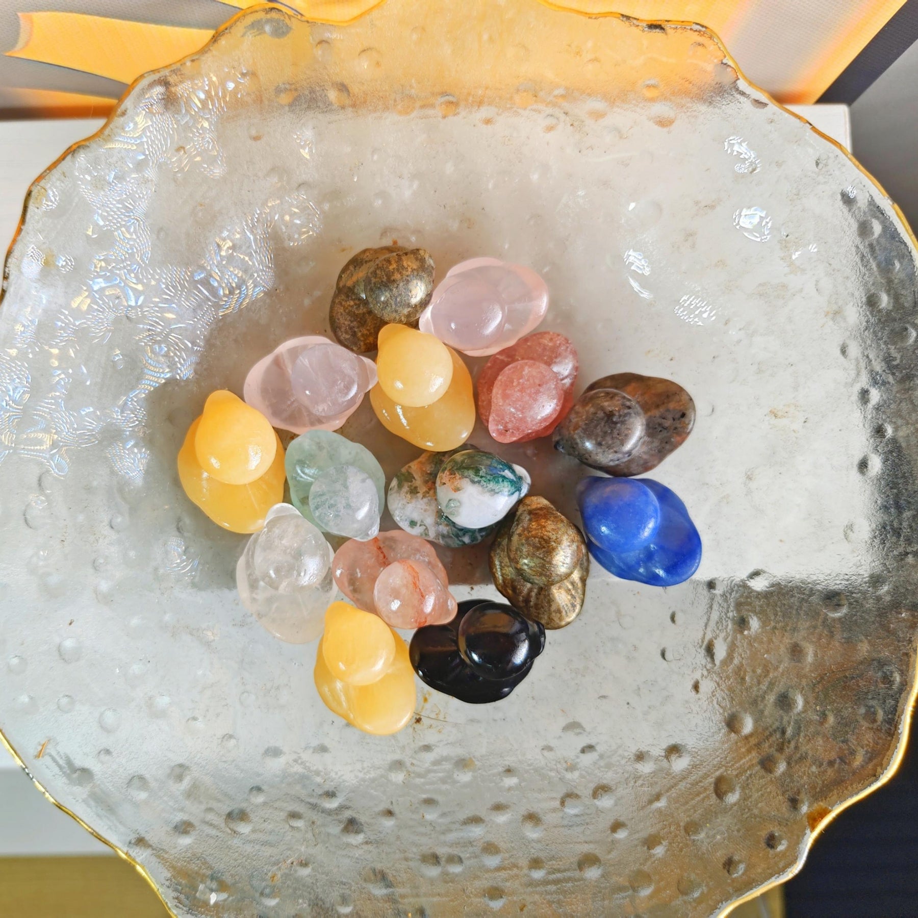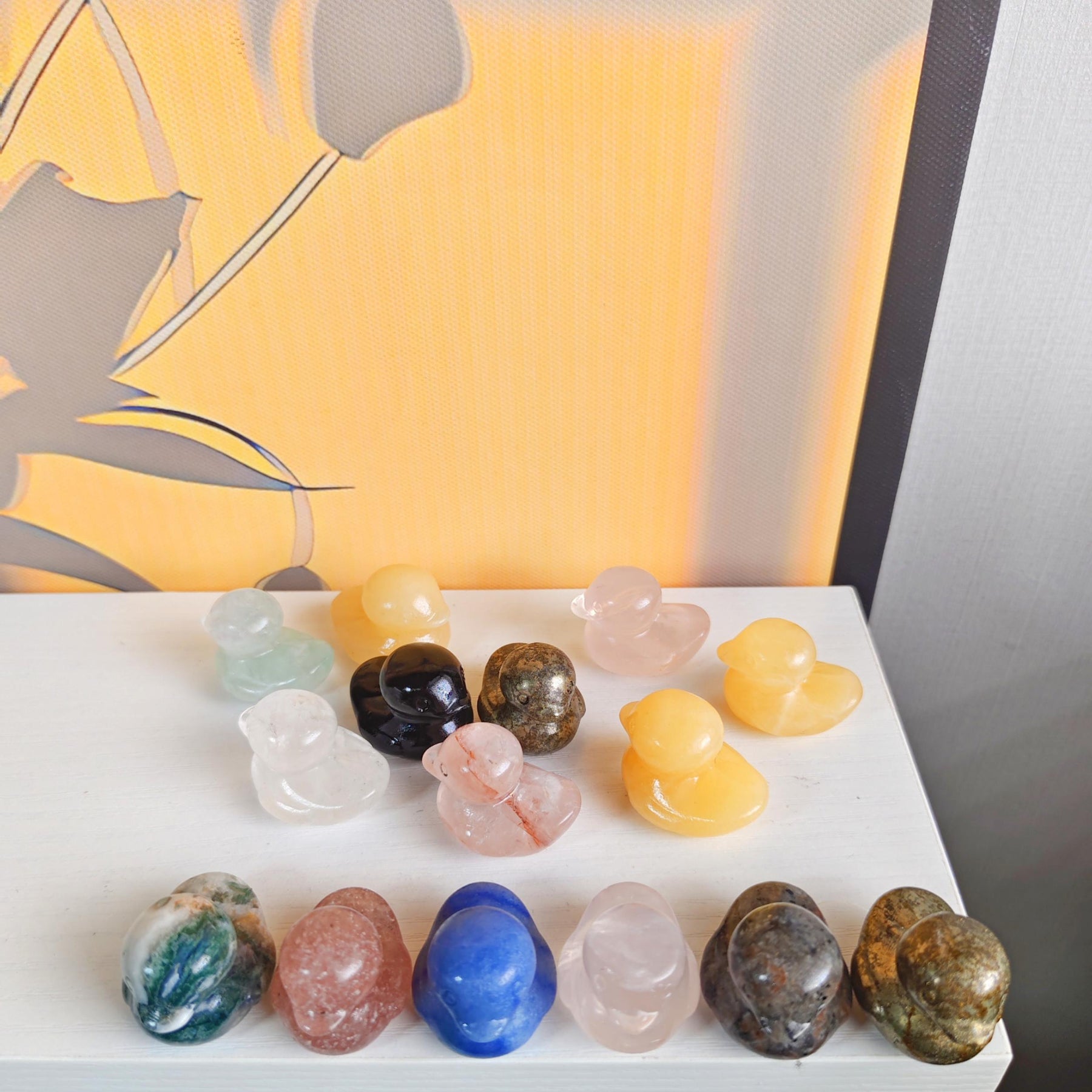 This duckling ornament is creatively crafted from natural crystal, perfect for adding healing energy to your space. It can be used as a table decoration or a healing crystal.