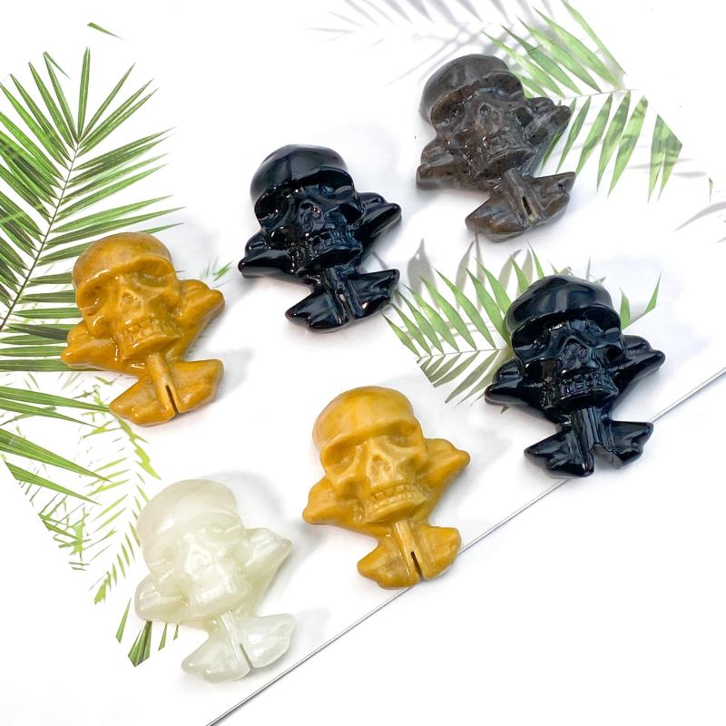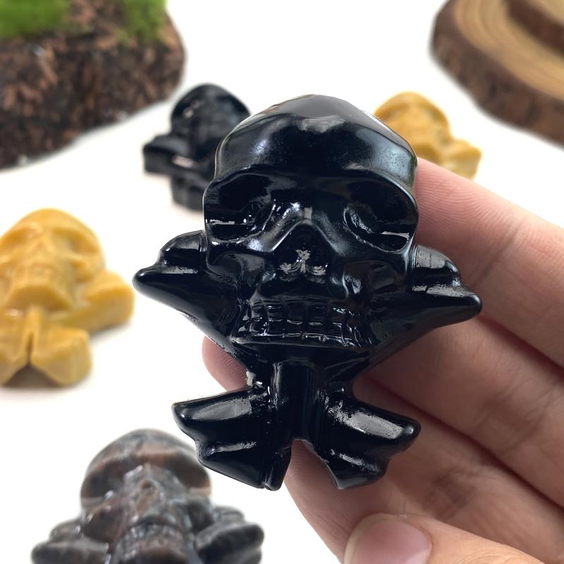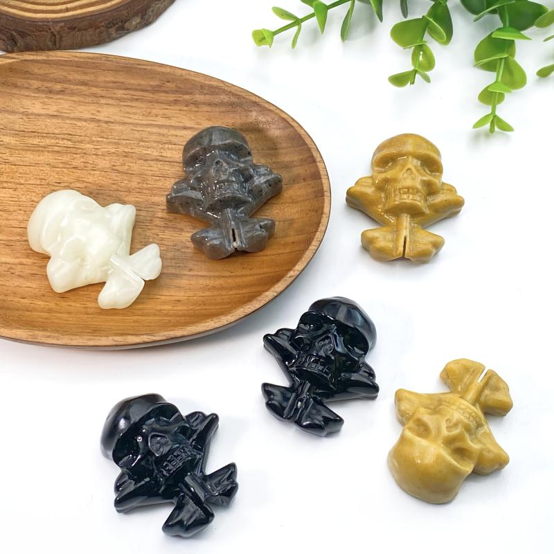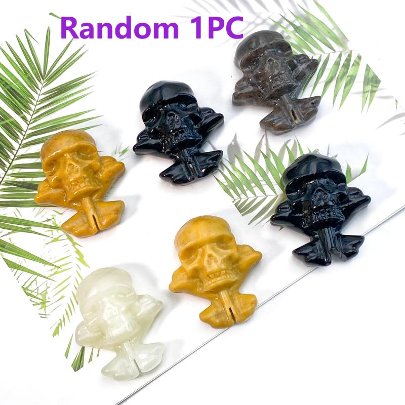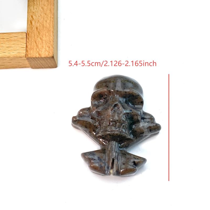 This unique skull head is crafted from volcanic agate stone and features glowing eyes. Ideal for DIY home decor, Halloween, or Christmas displays.