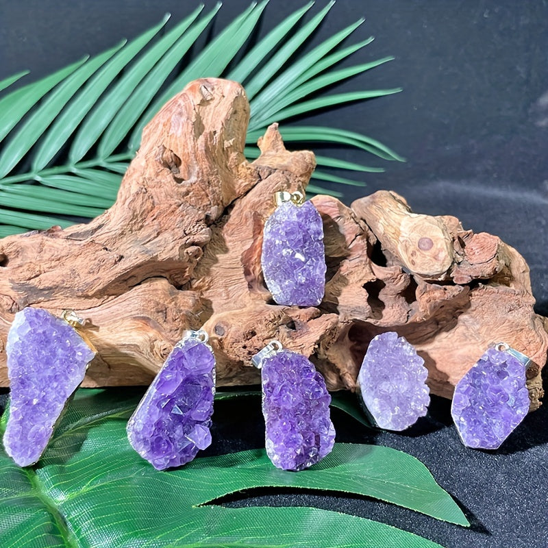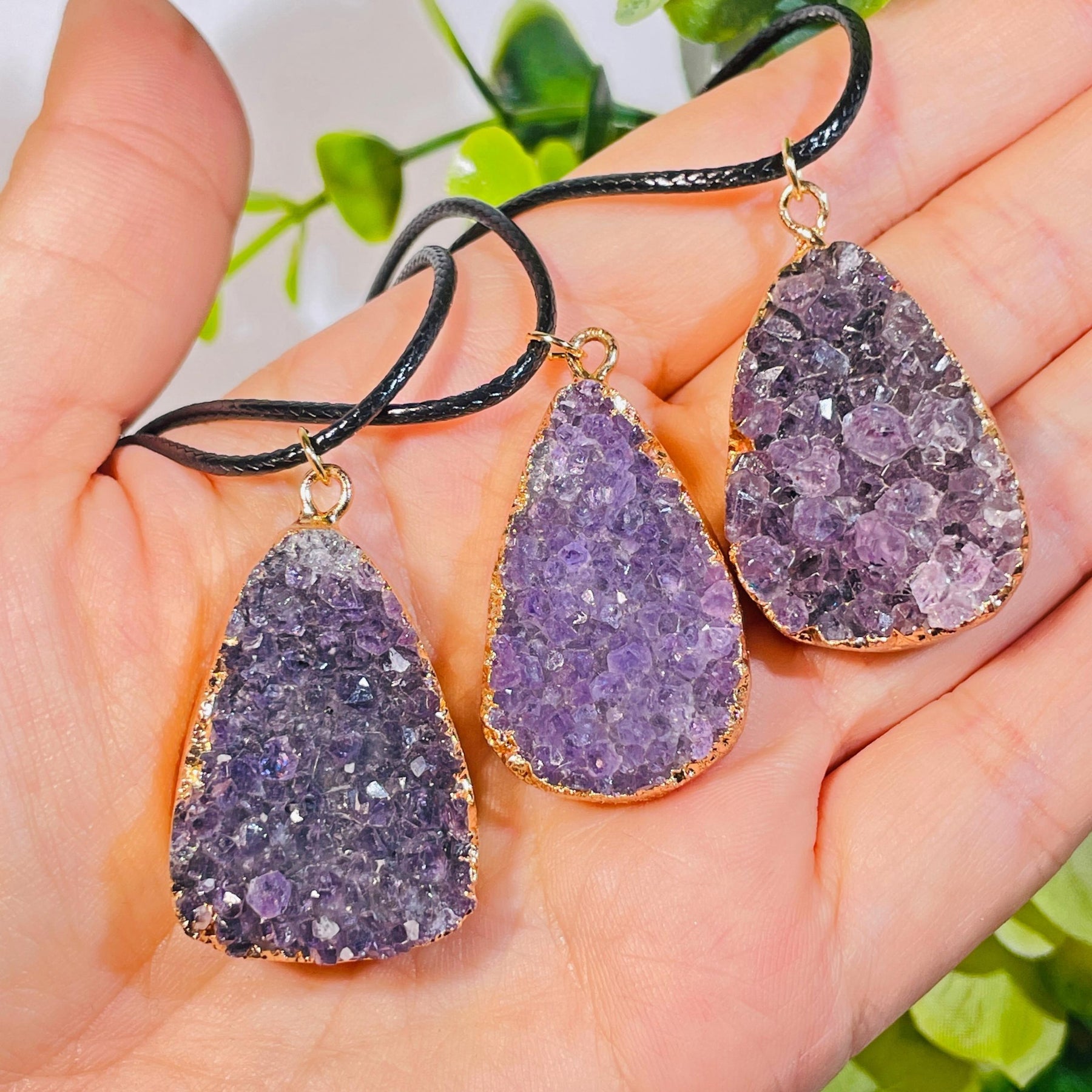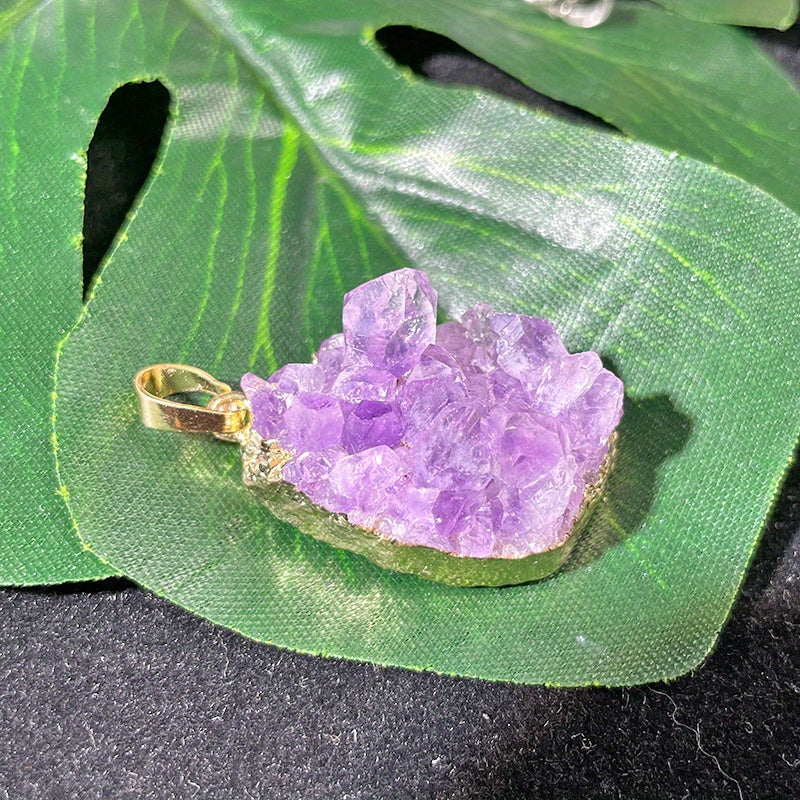 This stunning amethyst cluster pendant is perfect for divination, meditation, and special occasions. It is a healing crystal gemstone pendant that radiates positive energy.
