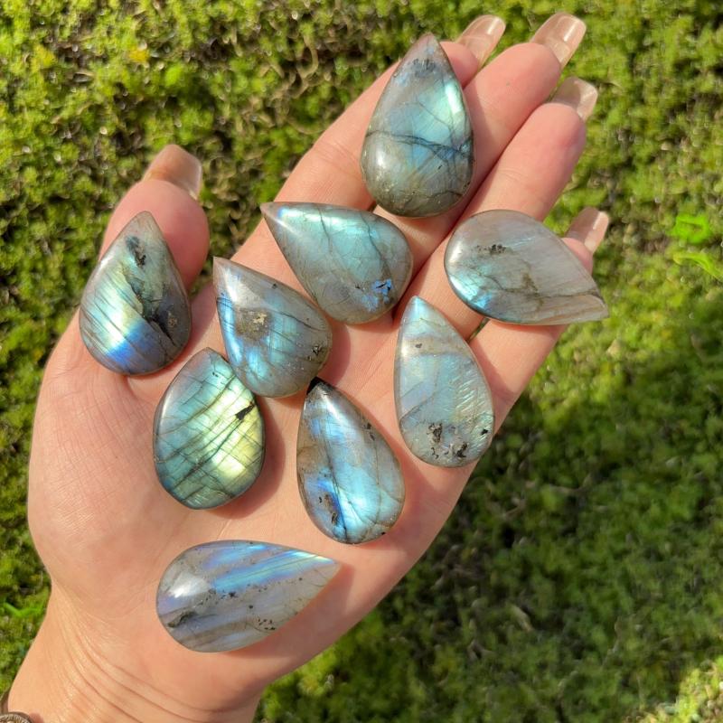 This natural Labradorite stone pendant features a mesmerizing play of water drop iridescence, making it a perfect Valentine's gift. Each stone is unique with inclusions.