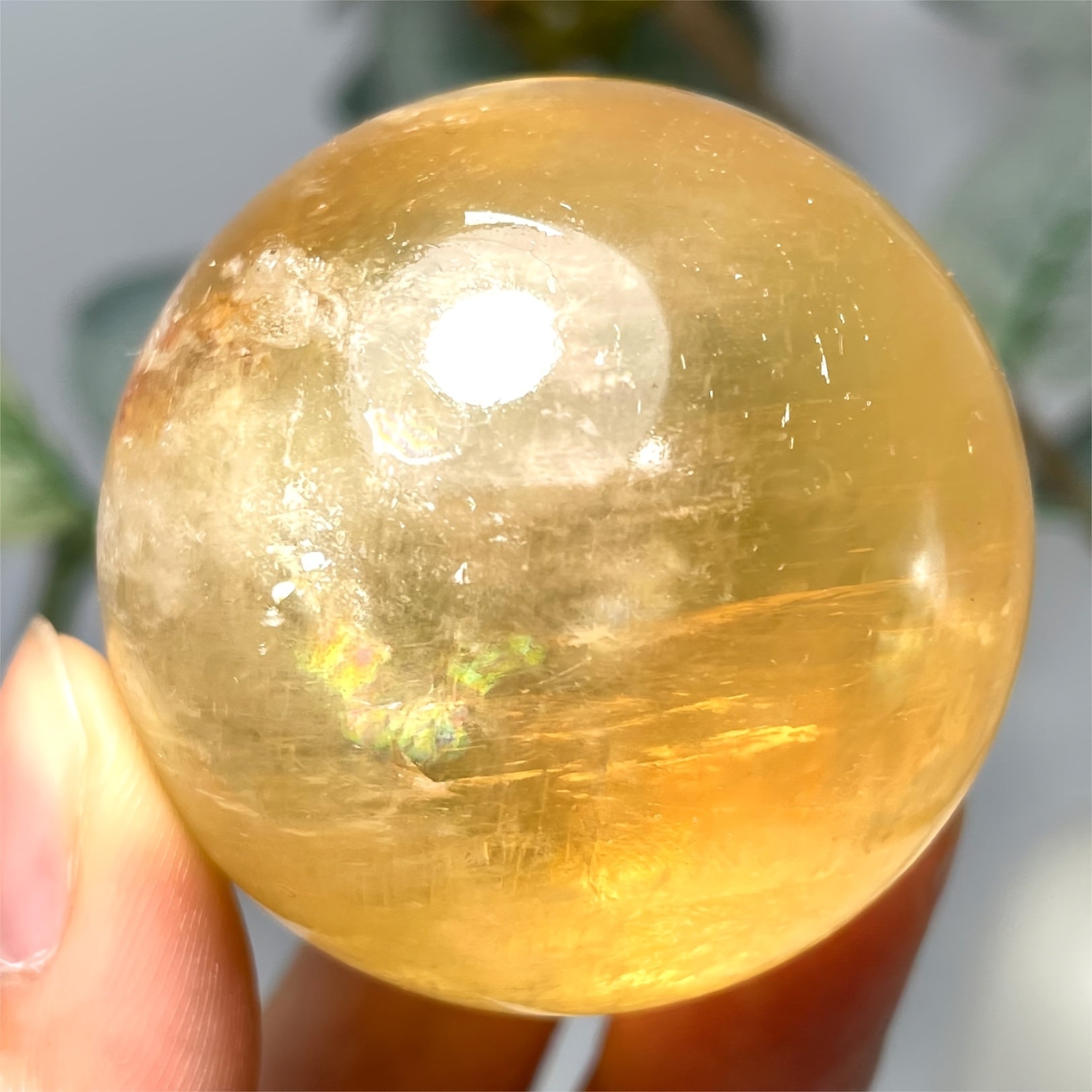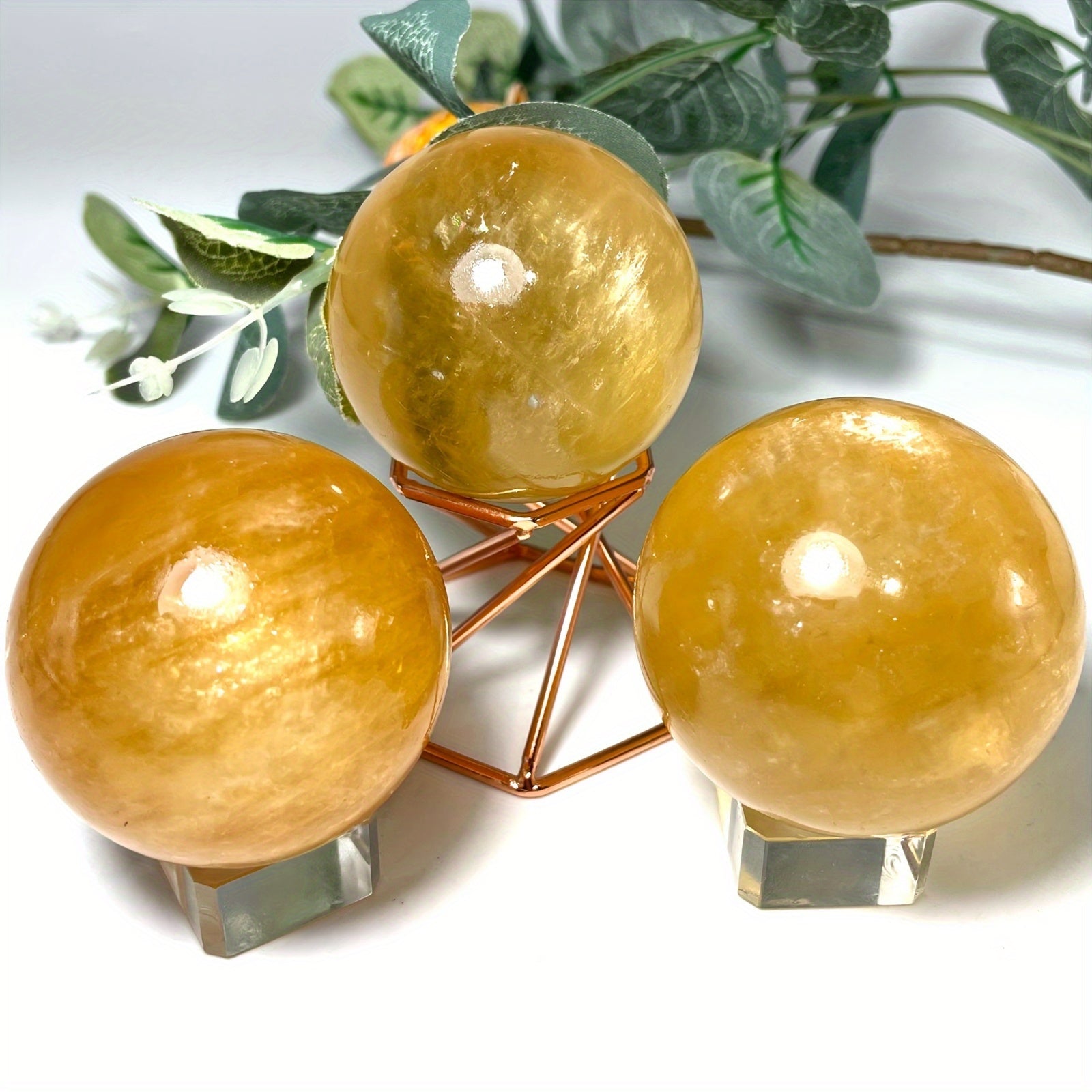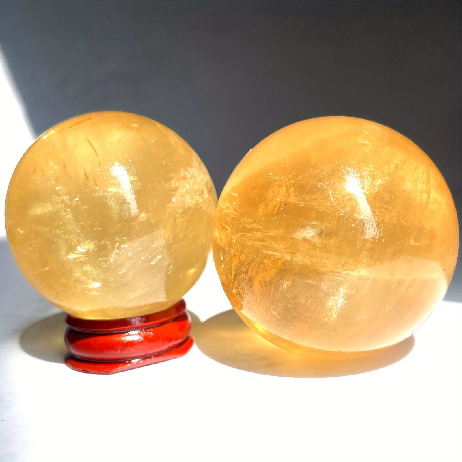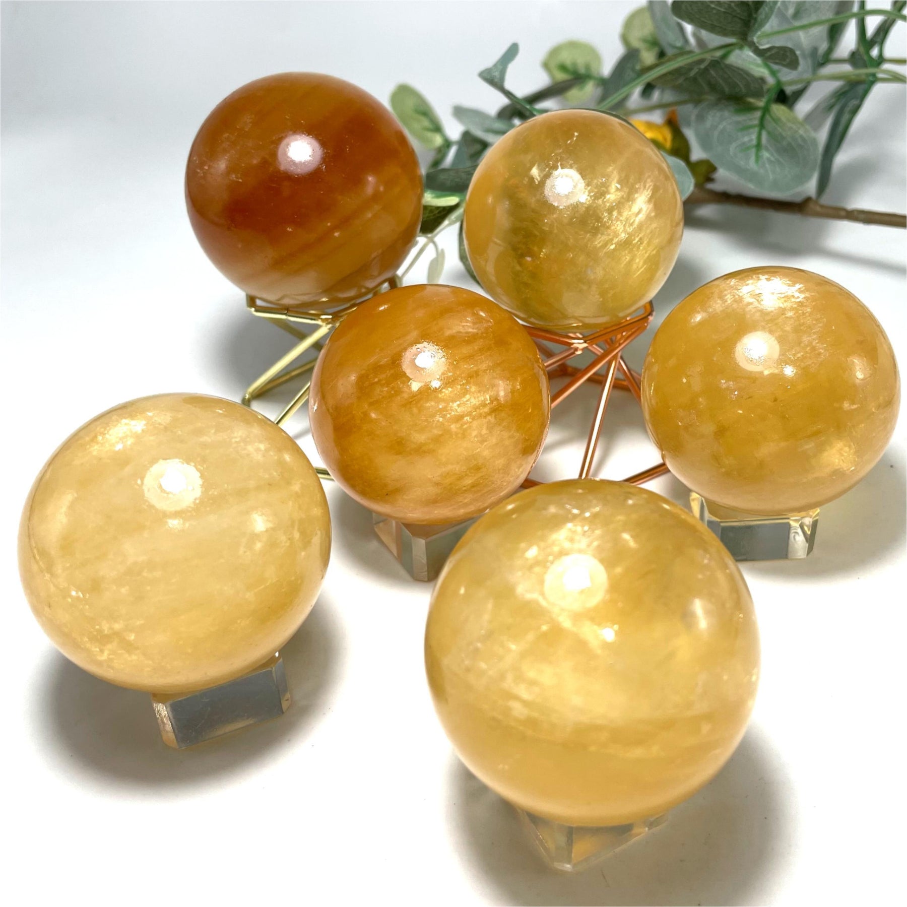 Bring positive energy into your home with this beautiful Large Yellow Calcite Stone Sphere. This 2.36'' polished crystal ball is perfect for home decor and crystal healing practices.