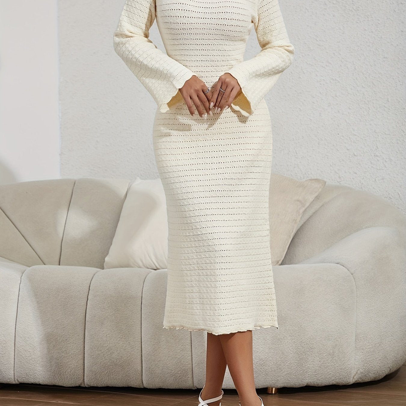 Stay comfortably stylish in this long sleeve maxi dress with a slim fit and crew neck design, perfect for spring and fall.
