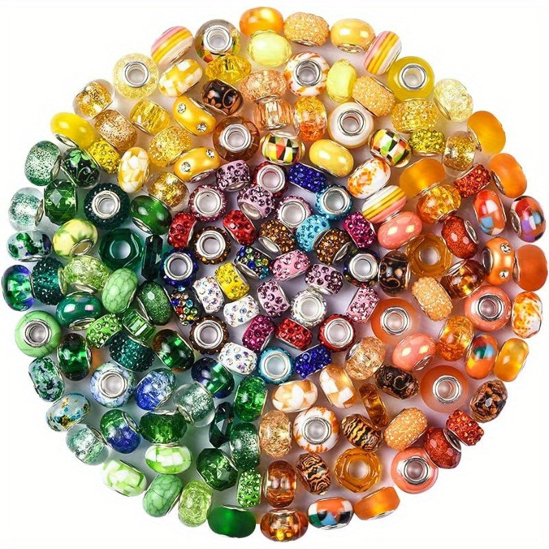 Create stunning jewelry with this mix of large hole spacer beads featuring vibrant colors and geometric patterns. Perfect for crafting unique pieces.