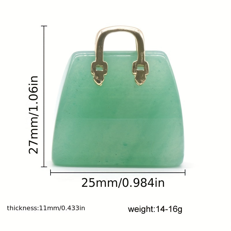 This hand-carved mini bag ornament features natural green crystal stones including amethyst and rose quartz. Perfect as a tabletop decoration or gift for wife, girlfriend, or mom.