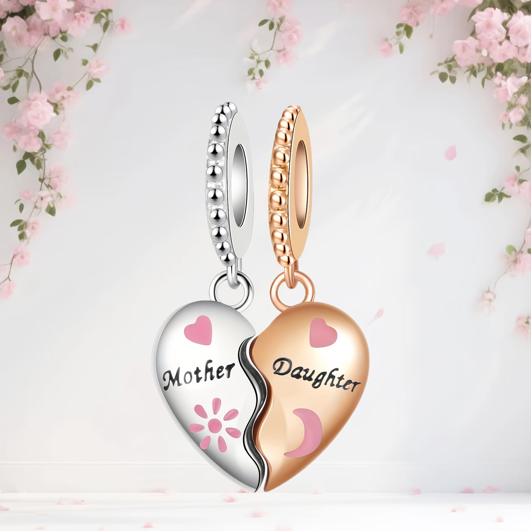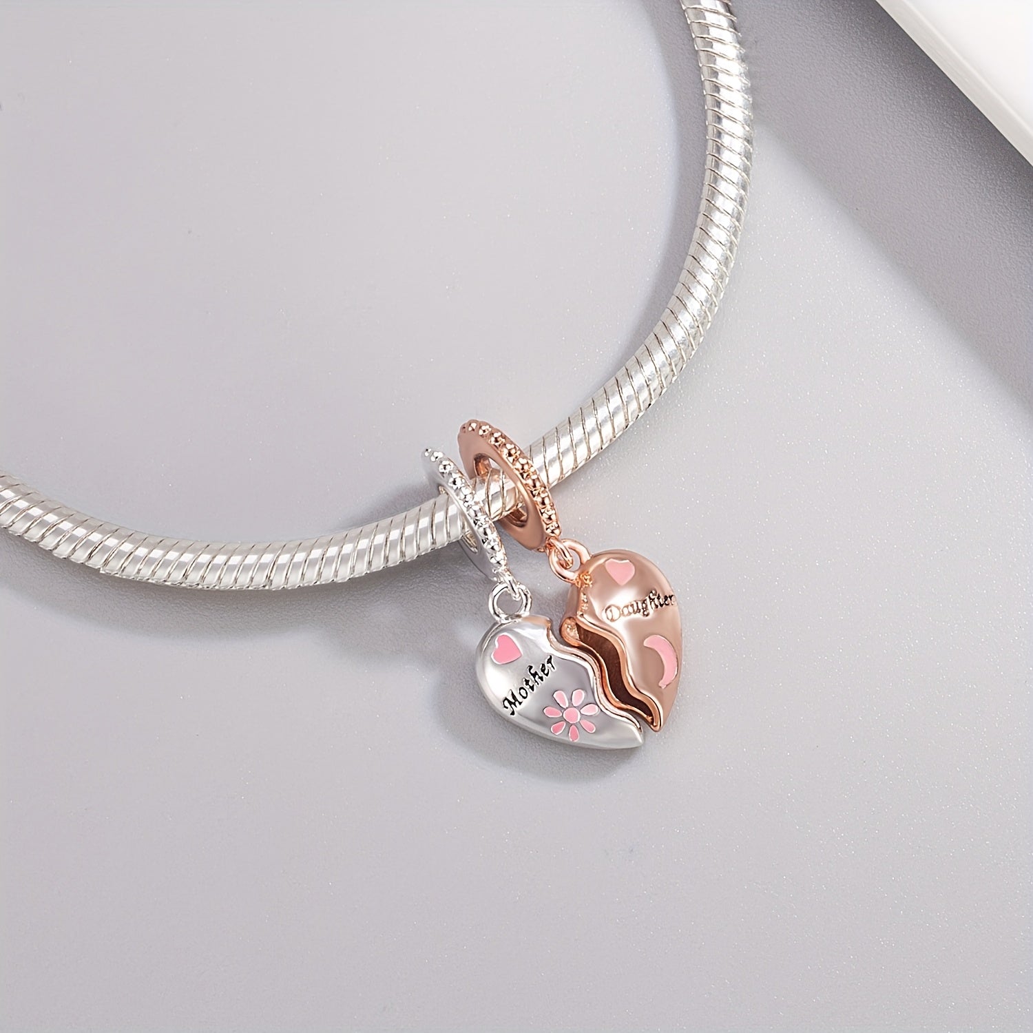 Create beautiful bracelets and necklaces with this heart-shaped bead pendant featuring a copper half spliced design with floral accents. Perfect for Mother's Day or birthdays.