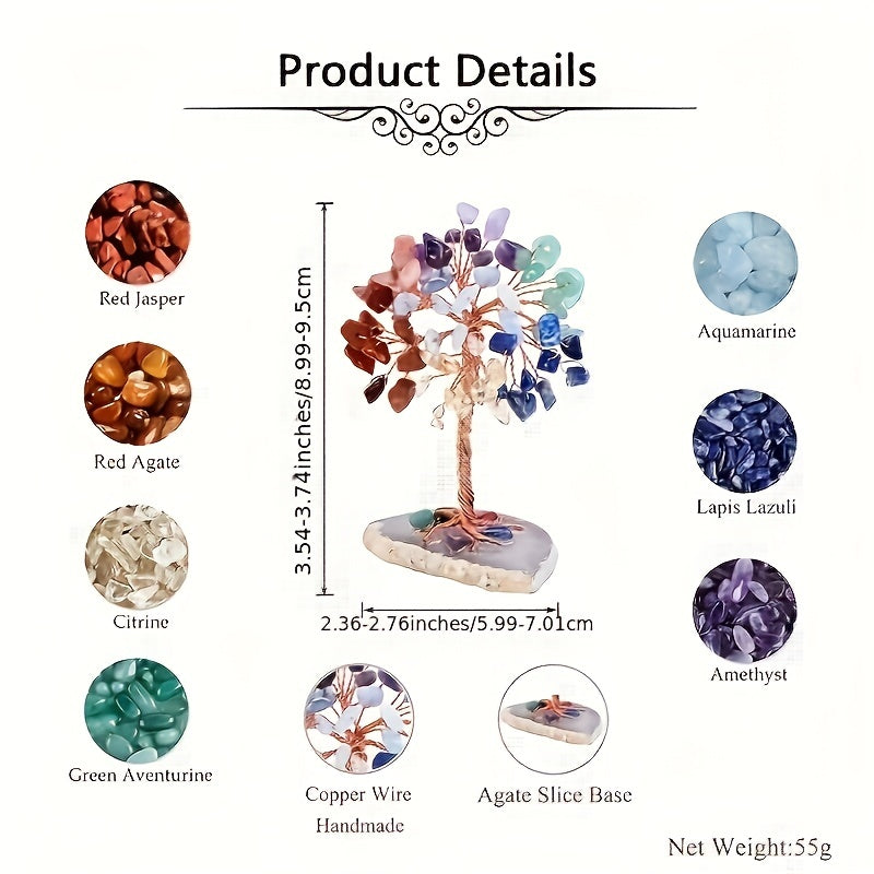 This creative Father's Day gift features a fortune tree design made with amethyst crystals. The seven chakras are represented in this unique piece of jewelry.