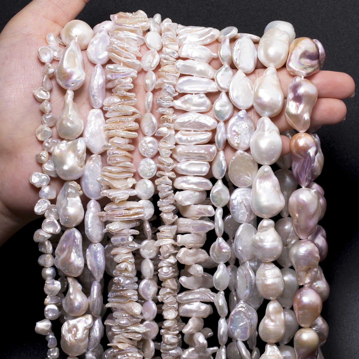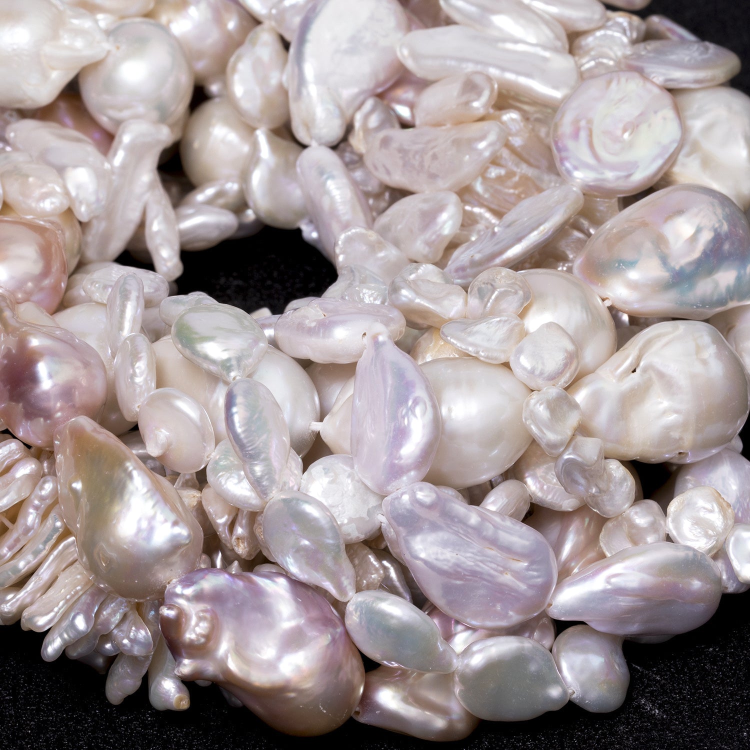 Enhance your jewelry designs with these unique 4-25mm extra large droplet freshwater pearls. The irregular shapes in creamy beige and soft pink add a touch of elegance to any project.