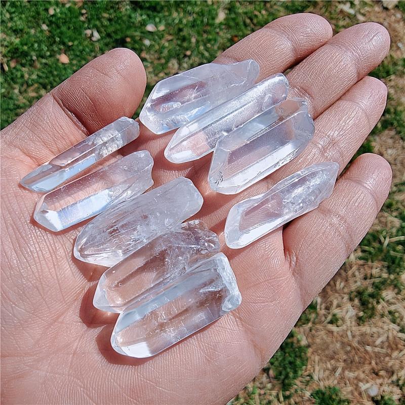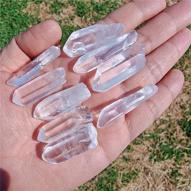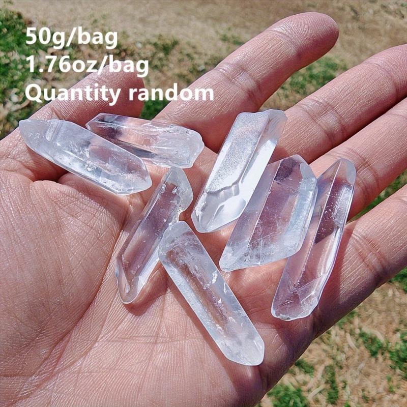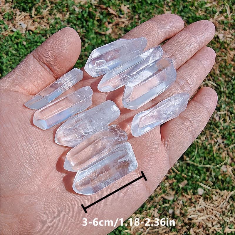 Enhance your home decor with this 76oz bag of clear quartz crystal points. These imperfect crystals are perfect for adding a touch of natural beauty to your space.