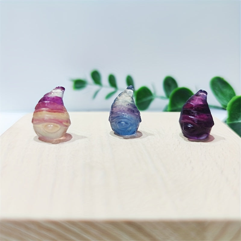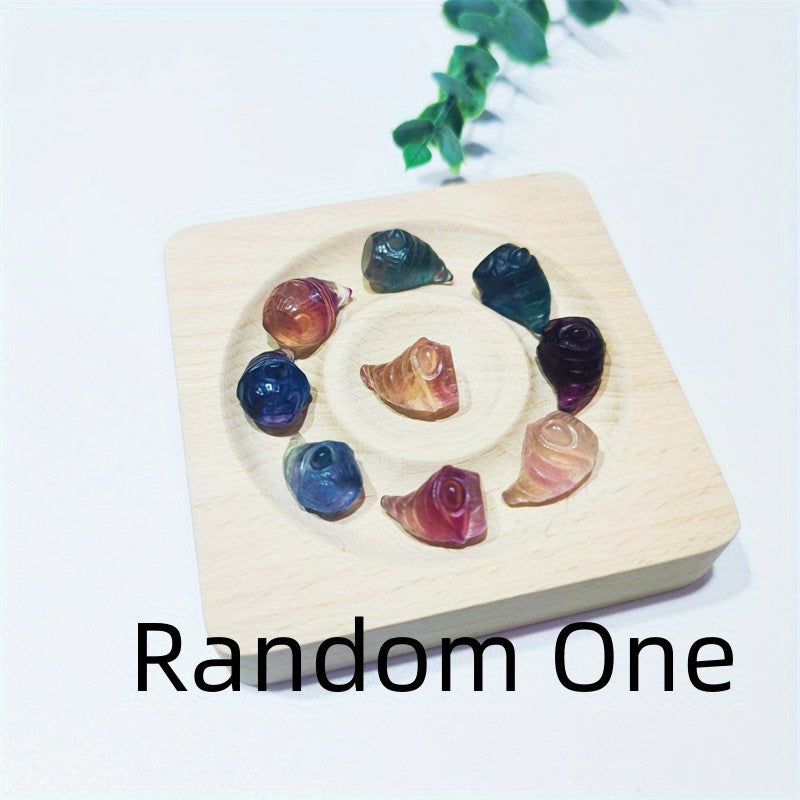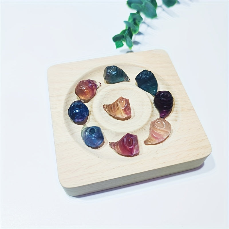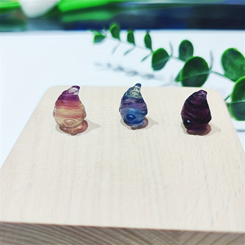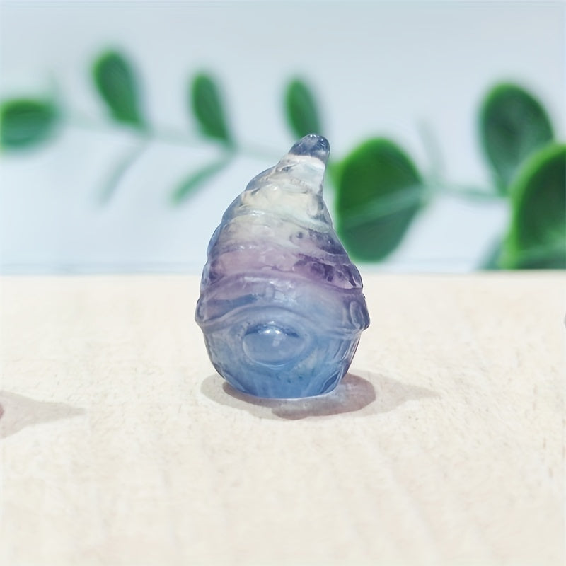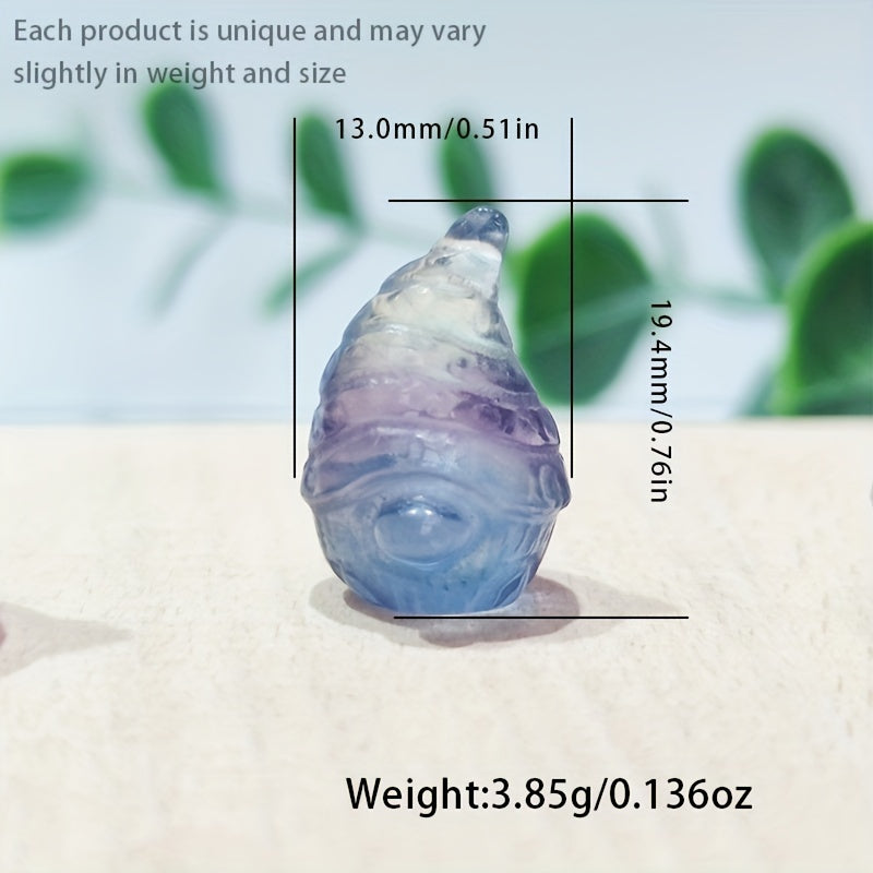 This exquisite conch carving is made from natural crystal fluorite, showcasing colorful sea snail art. A beautiful and unique handcrafted ornament.