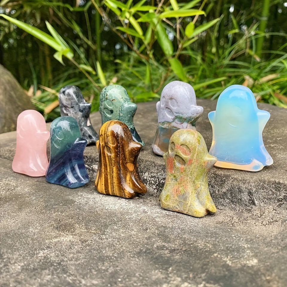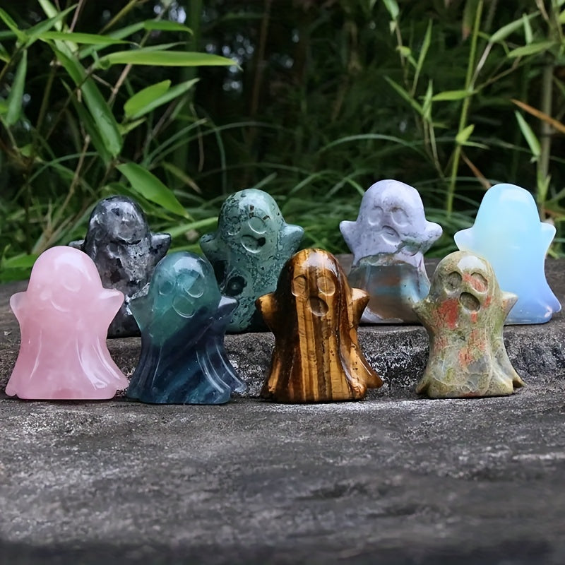 Add a spooky touch to your Halloween decor with this raw quartz stone ghost ornament. Perfect for adding an eerie vibe to your home or party.