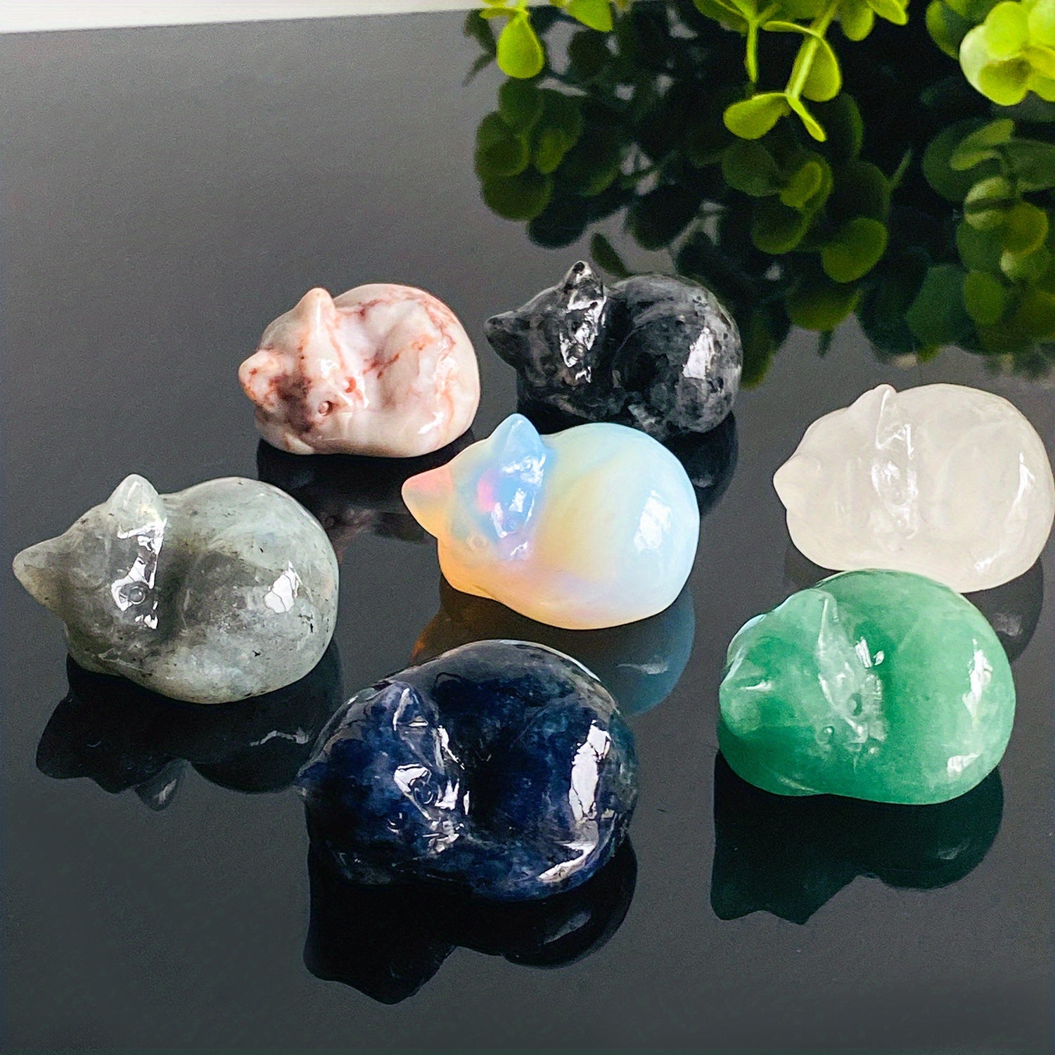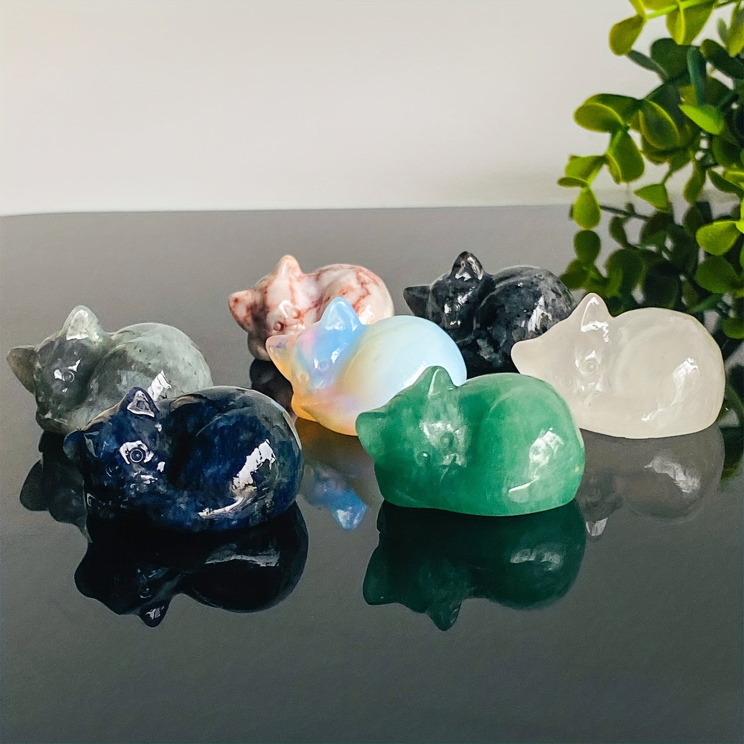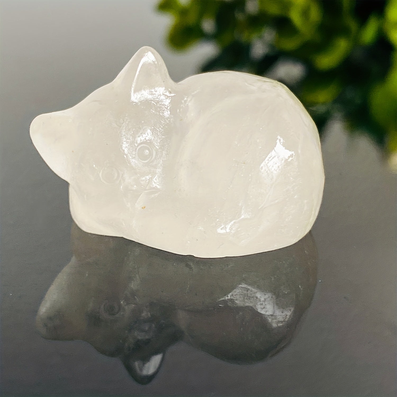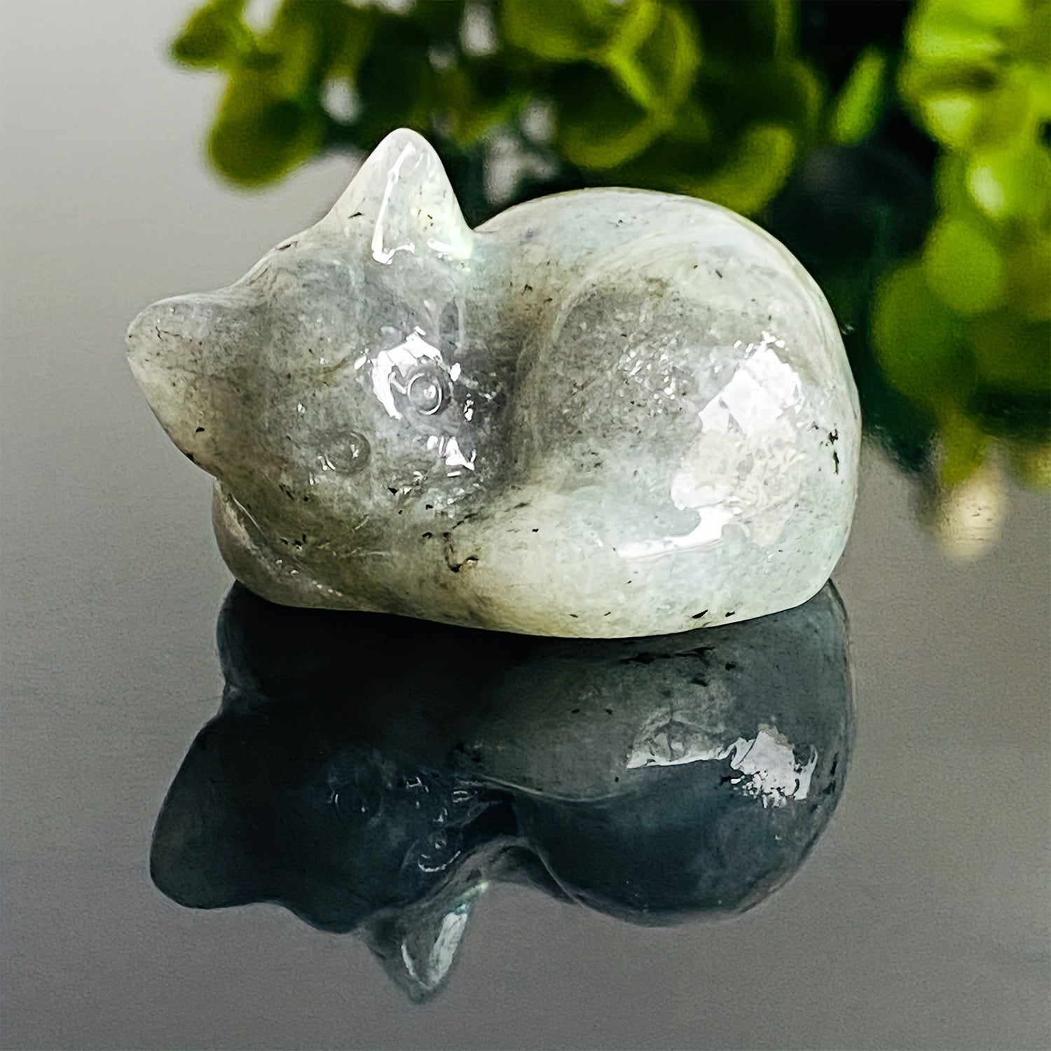 Natural Crystal Sleeping Cat Carving - Healing Energy Table Decoration