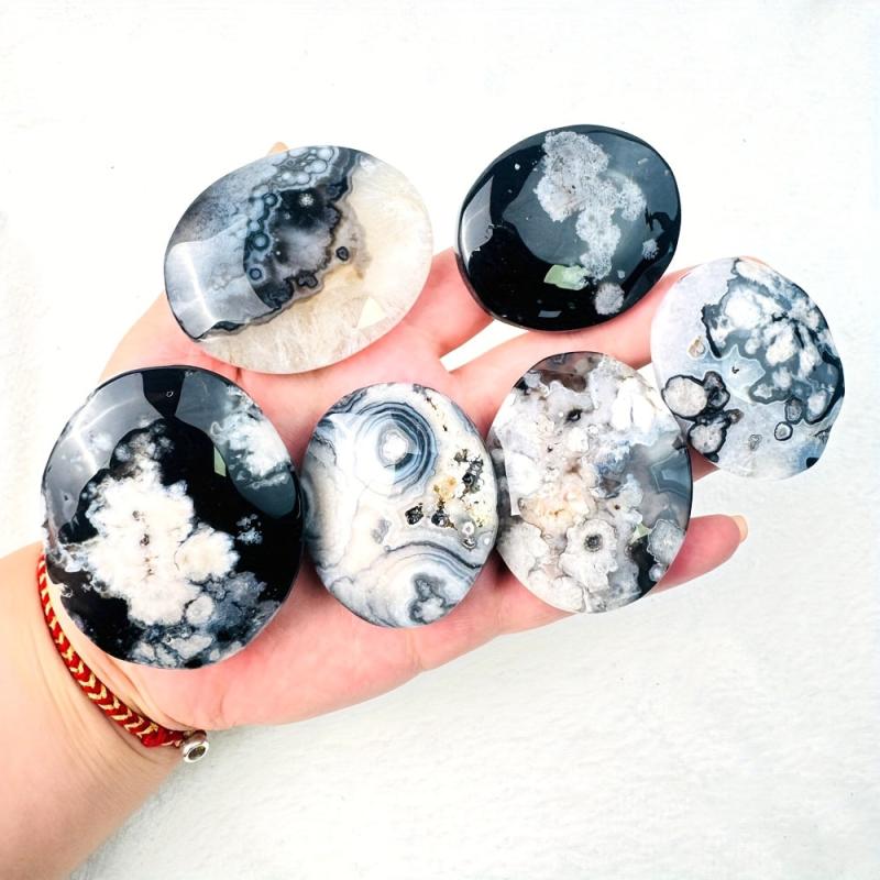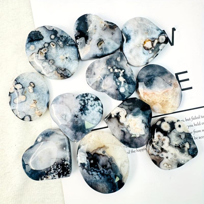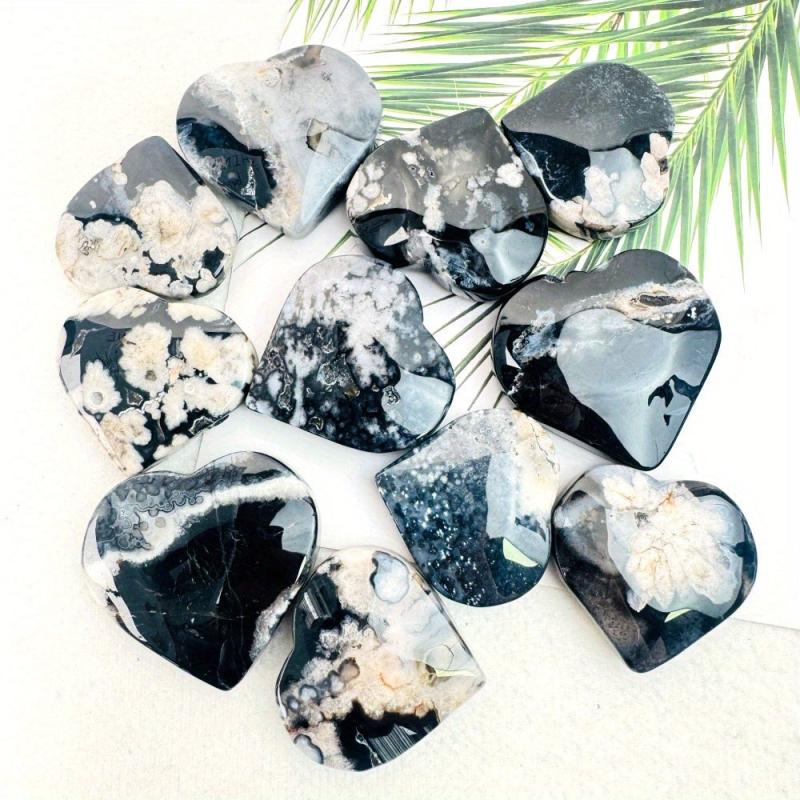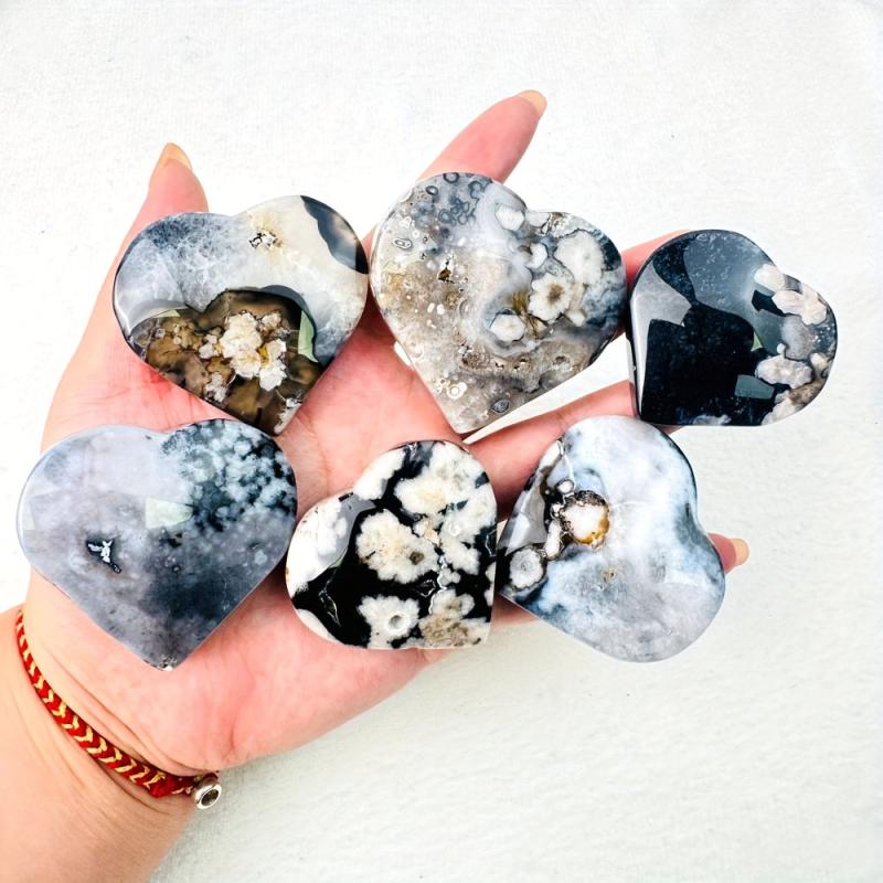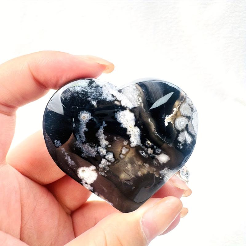 Natural Flower Agate Heart & Palm Stone Bohemian Marbling Floral Grey Glossy