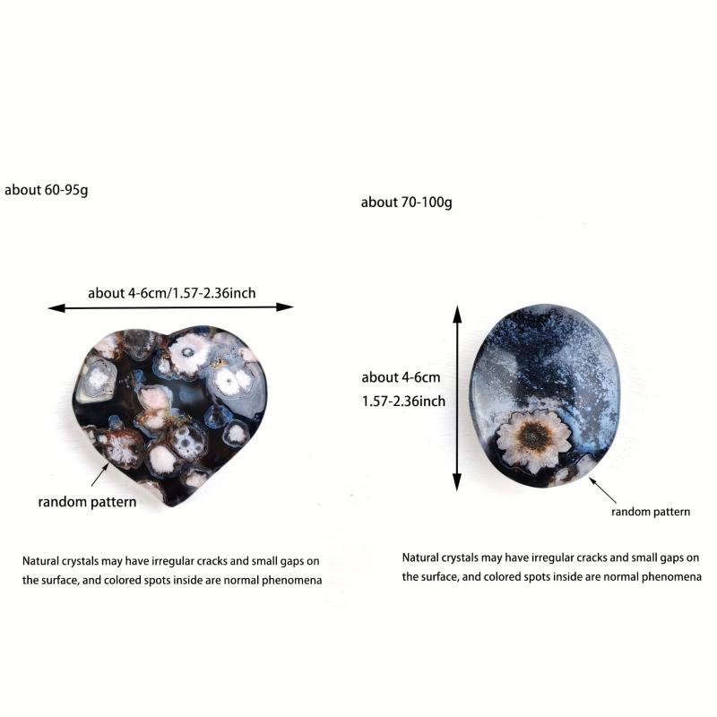 • One natural flower agate heart & palm stone