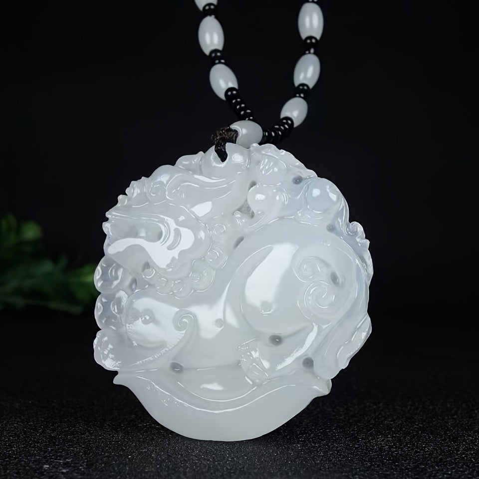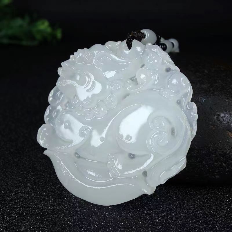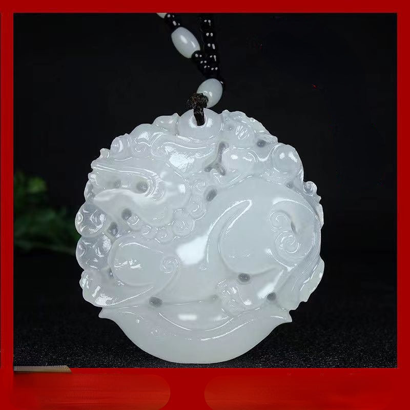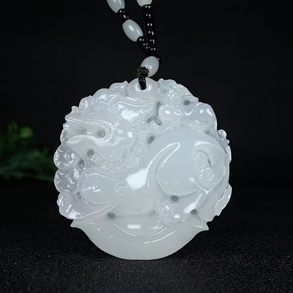 Natural Mutton Fat Jade Zhao Fortune Pixiu Jade Pendant Necklace