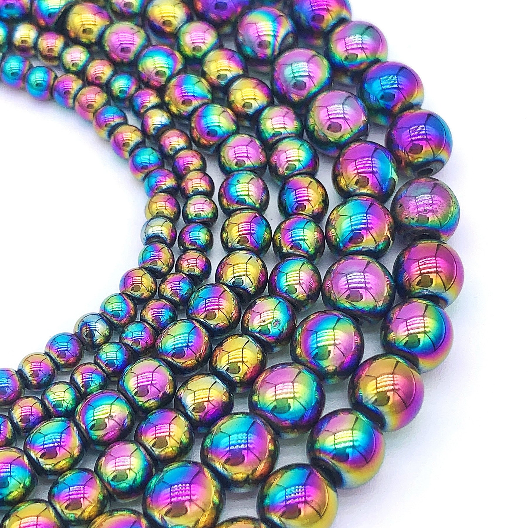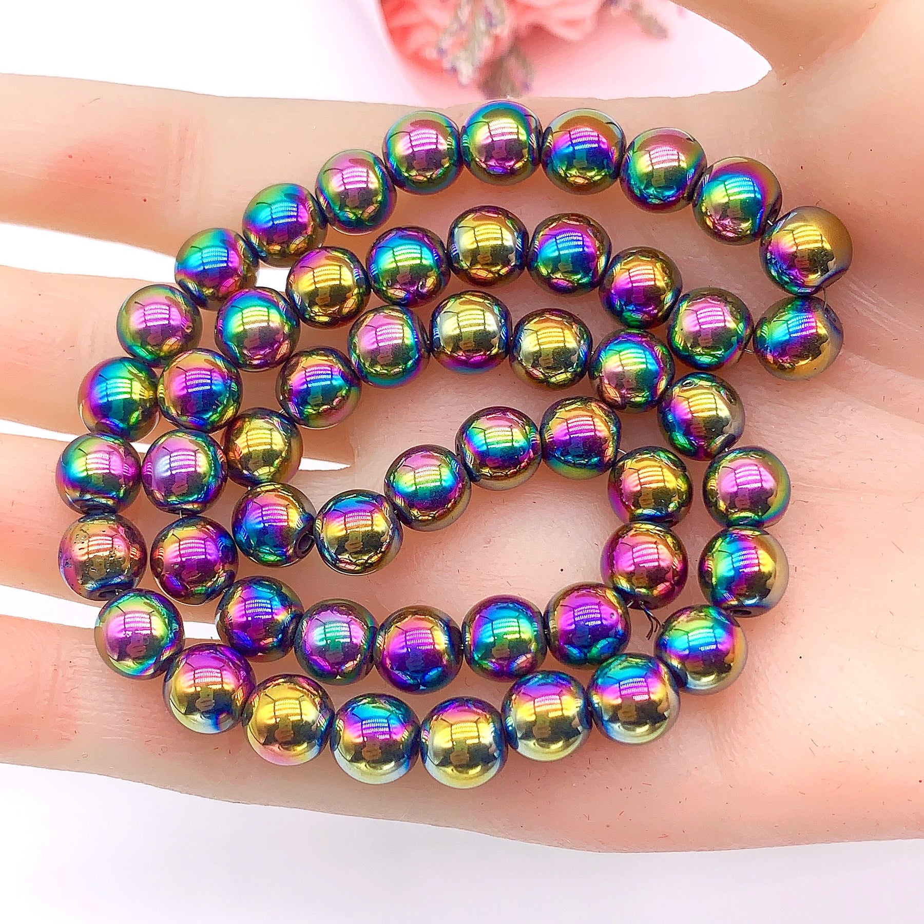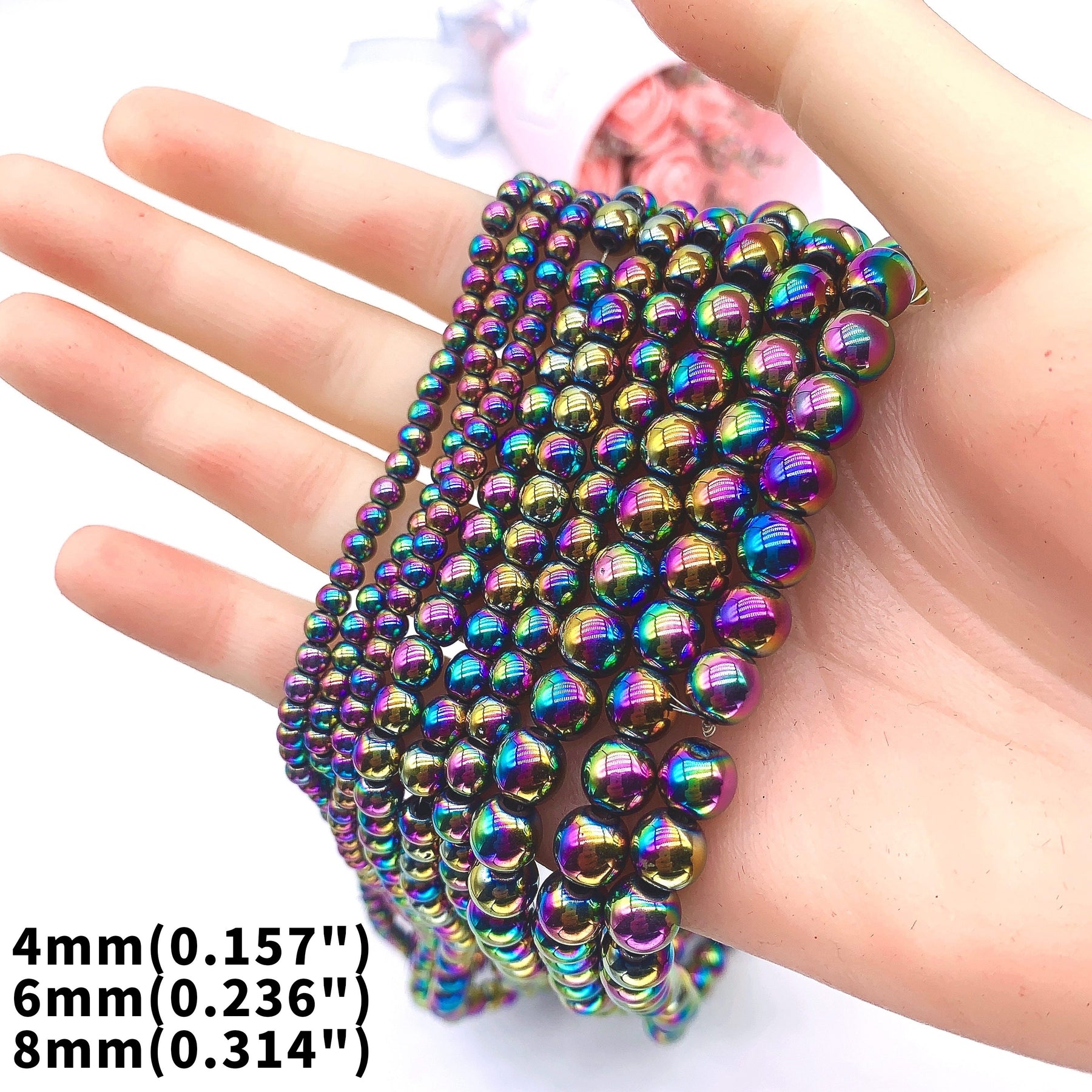 This set includes round natural rainbow hematite beads that can be used as spacer beads for DIY bracelet making. Perfect for creating artificial jewelry pieces.