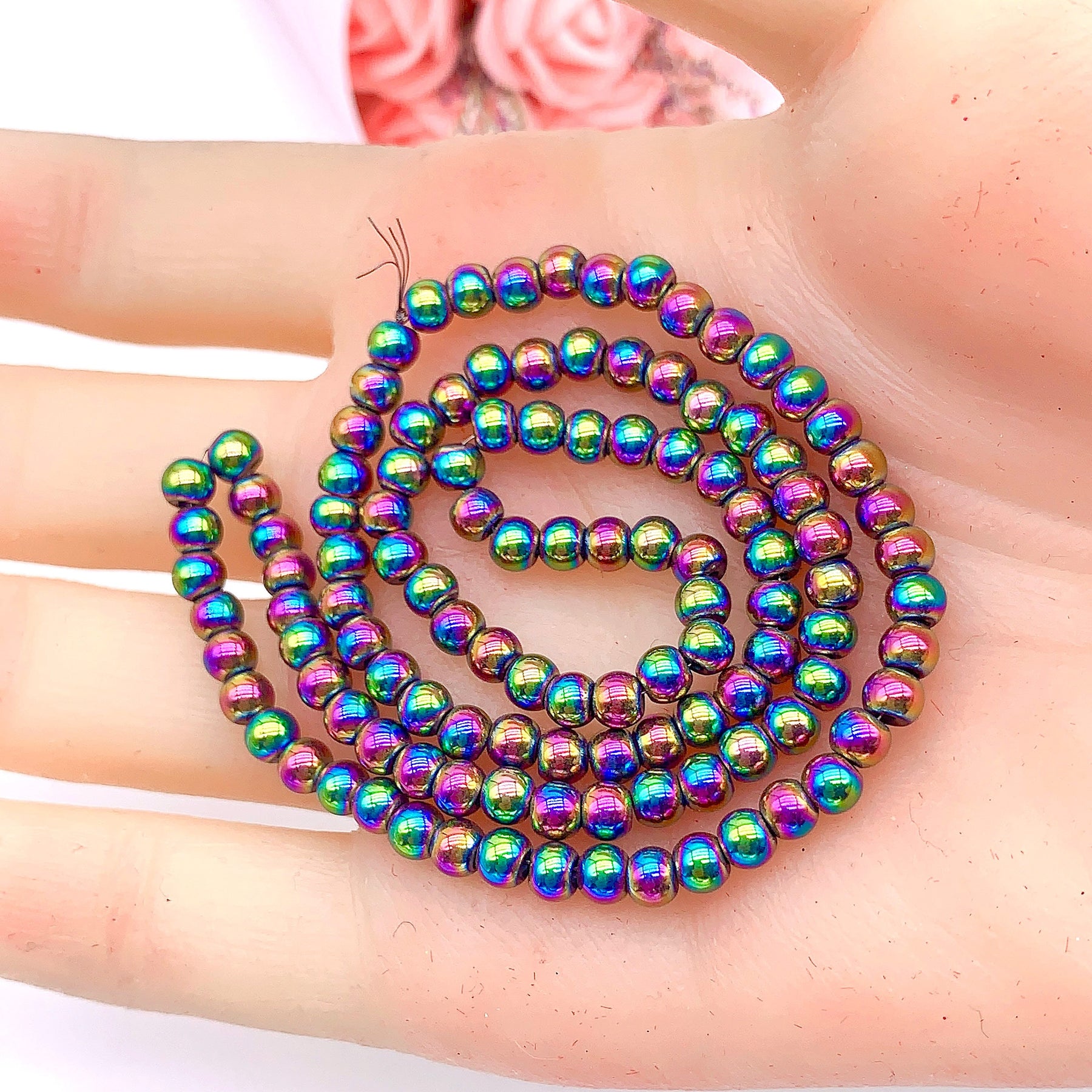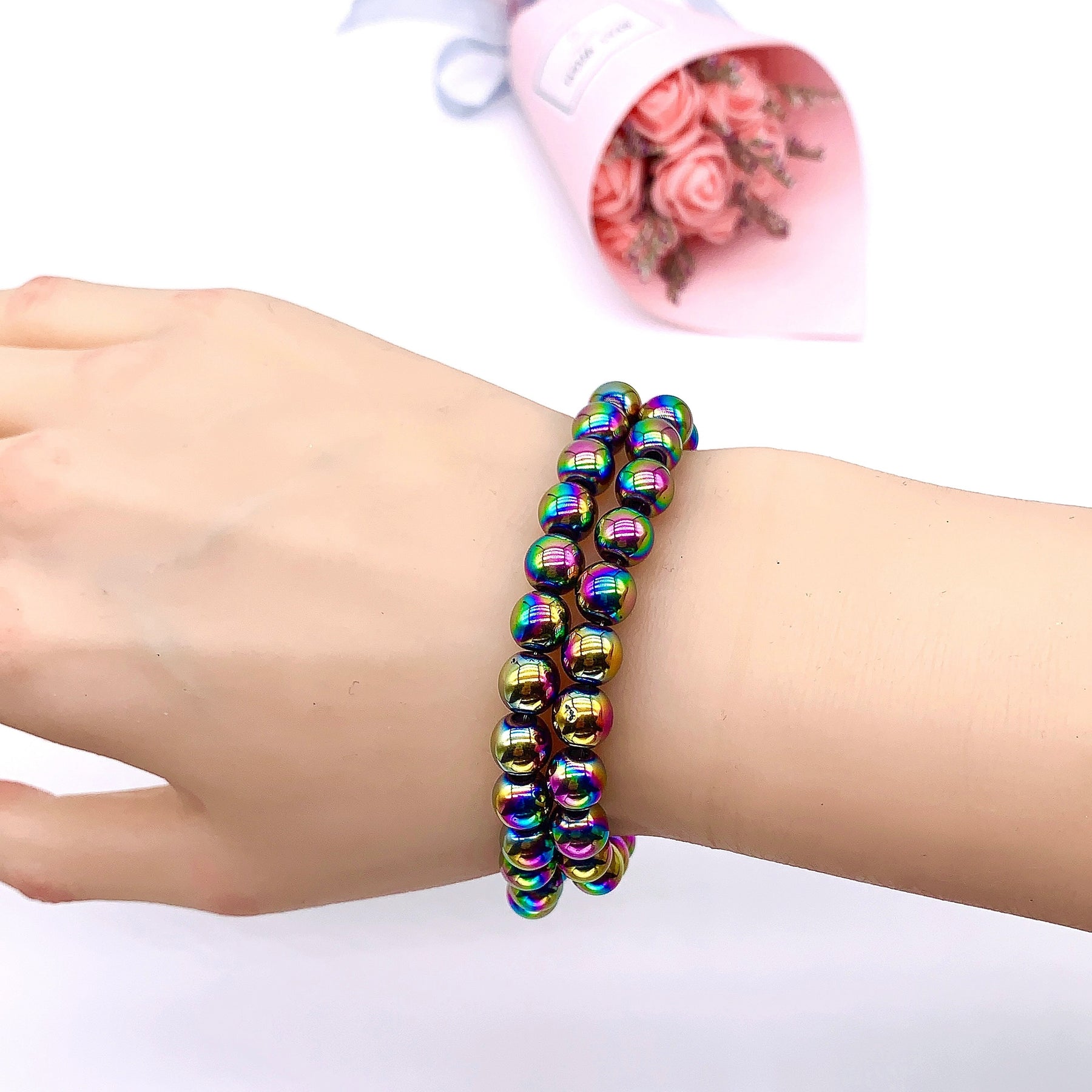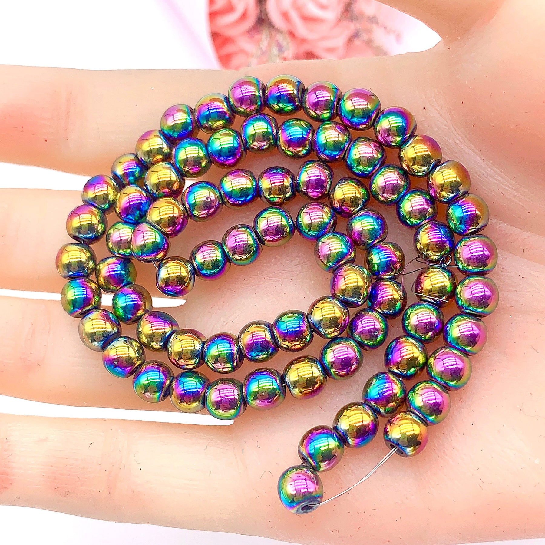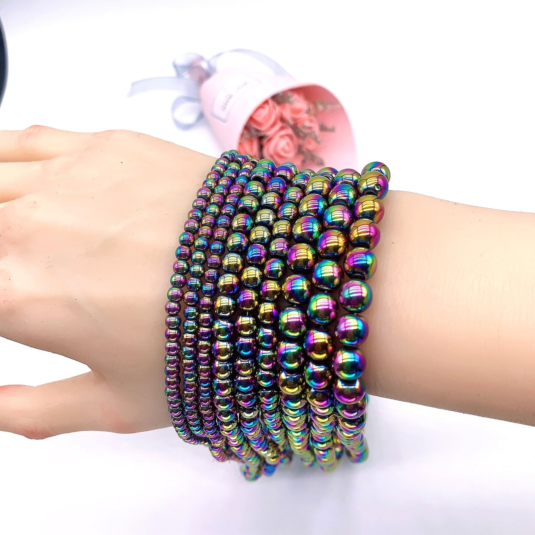 This set includes round natural rainbow hematite beads that can be used as spacer beads for DIY bracelet making. Perfect for creating artificial jewelry pieces.