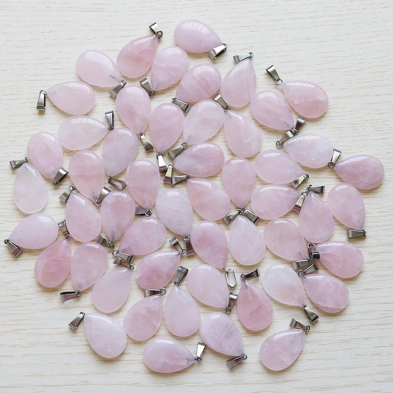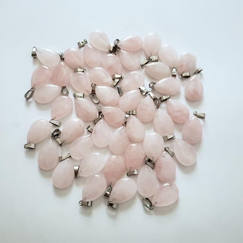 Add a touch of elegance to your creations with these natural rose quartz flat teardrop pendants. The pinkish beige to soft pinkish purple gradient adds a unique and beautiful look to necklaces, bracelets, and more.