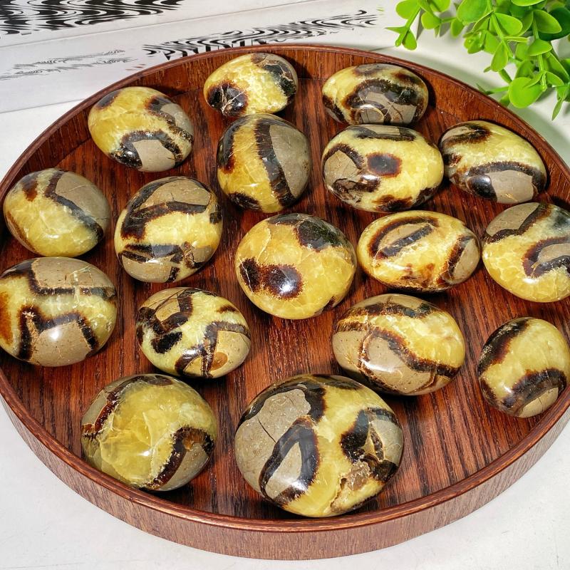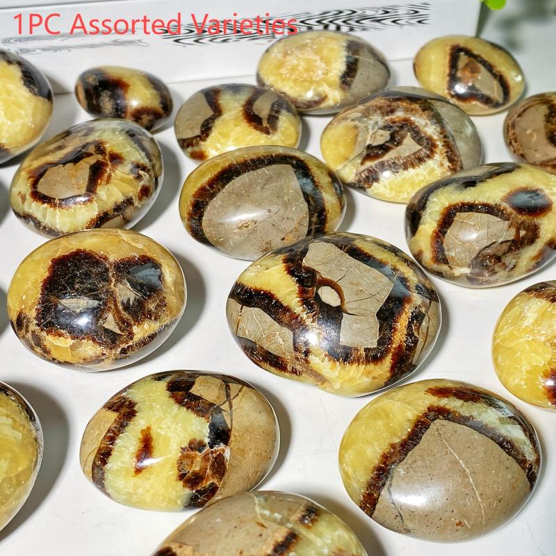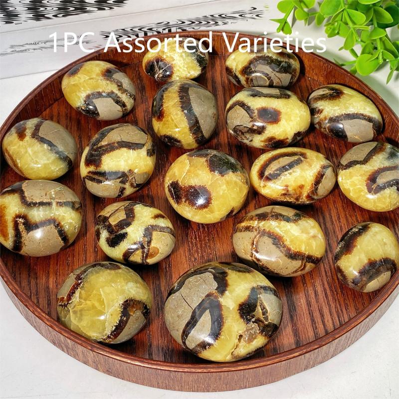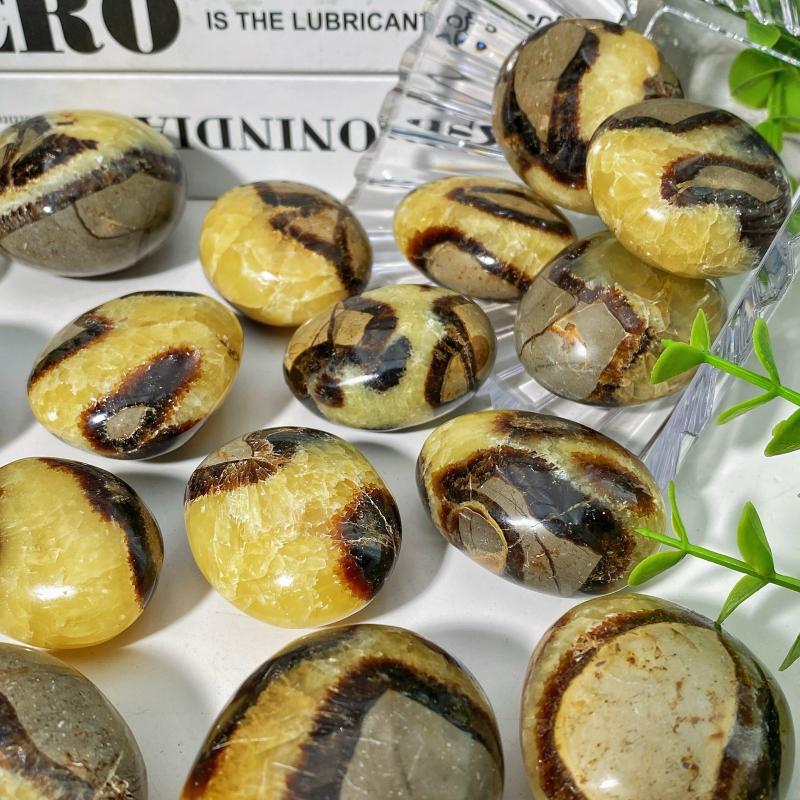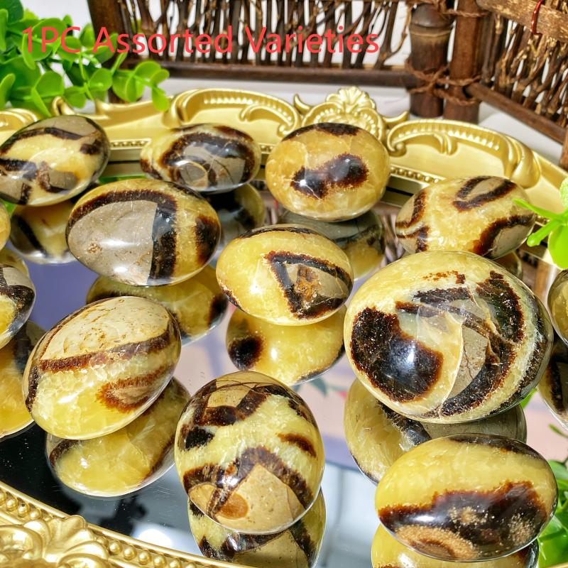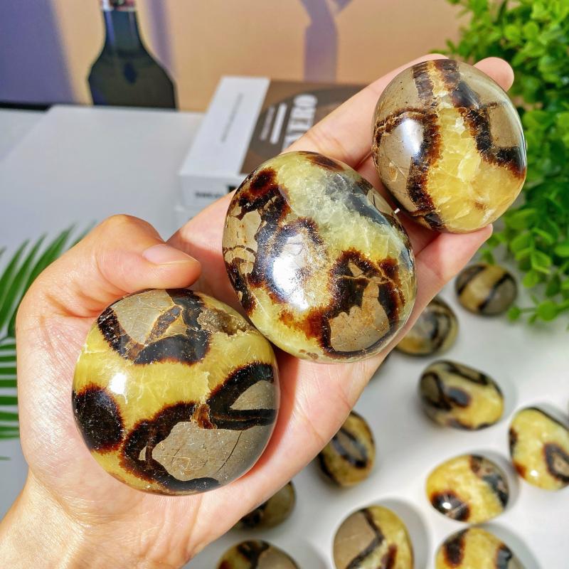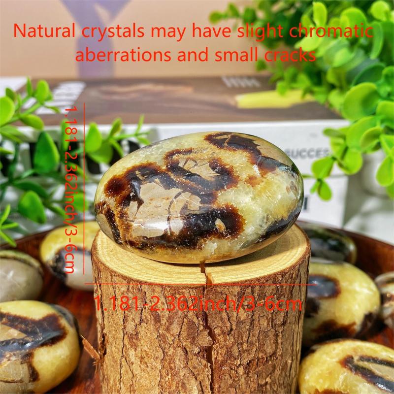 Unique faux gemstone egg made of natural Septarian stone for desktop decoration. Perfect for home decor projects and unique displays.