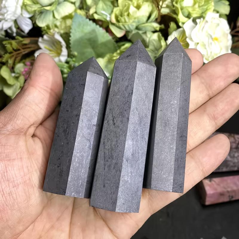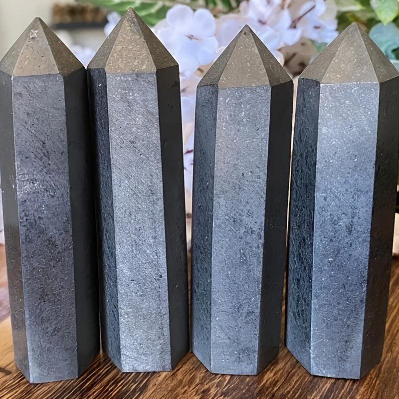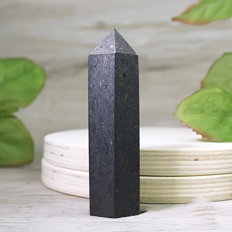 This polished Shungite crystal obelisk is a stunning decorative piece for your home altar or meditation space. Shungite is known for its grounding and protection properties, making it an excellent choice for spiritual practices.