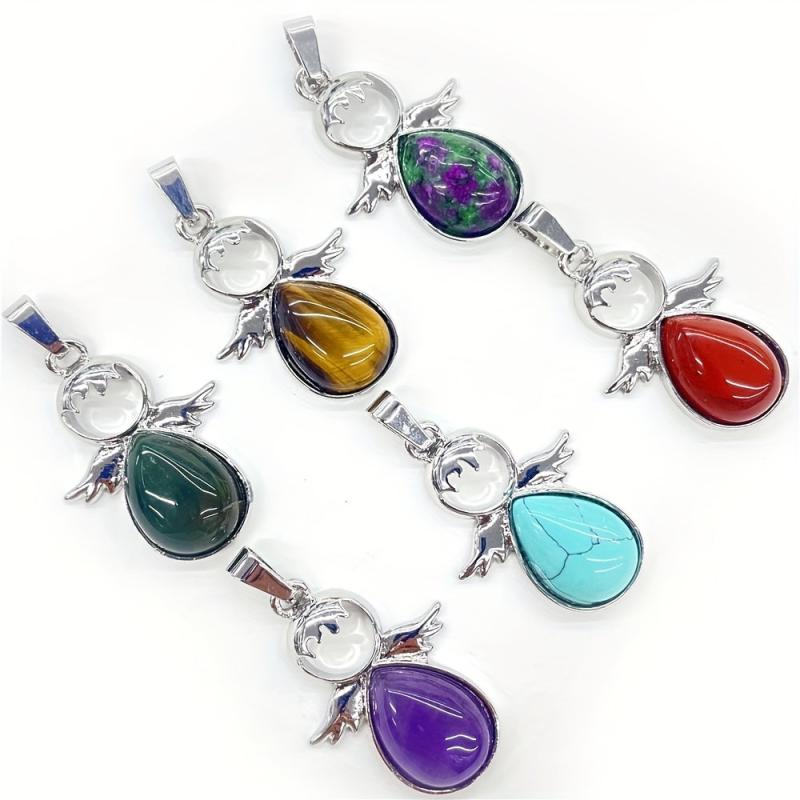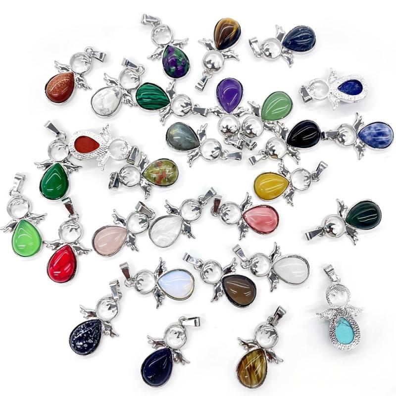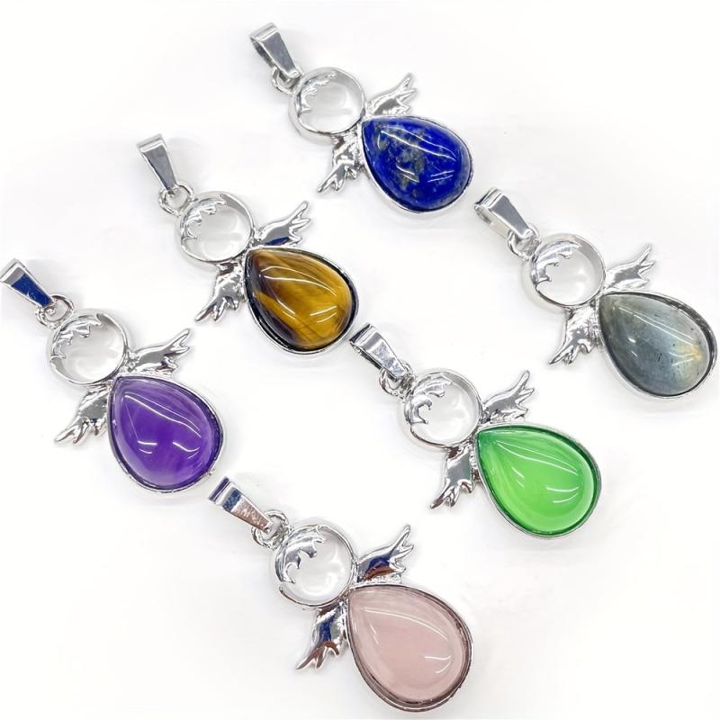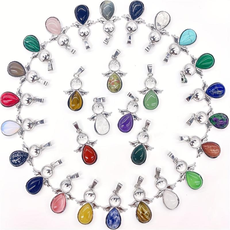 Create your own unique jewelry with this set of natural stone water drop wing figure pendants. Perfect for daily wear, holidays, and home decoration.