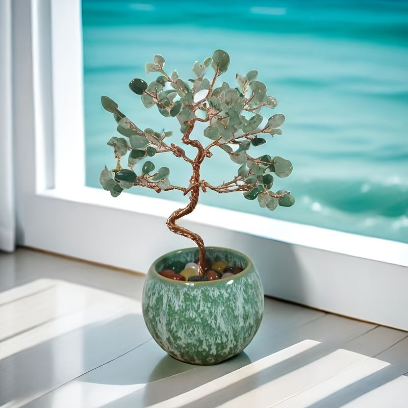 Beautiful pink quartz crystal tree with colorful faux leaves on a ceramic base. Perfect for Mother's Day or birthdays.