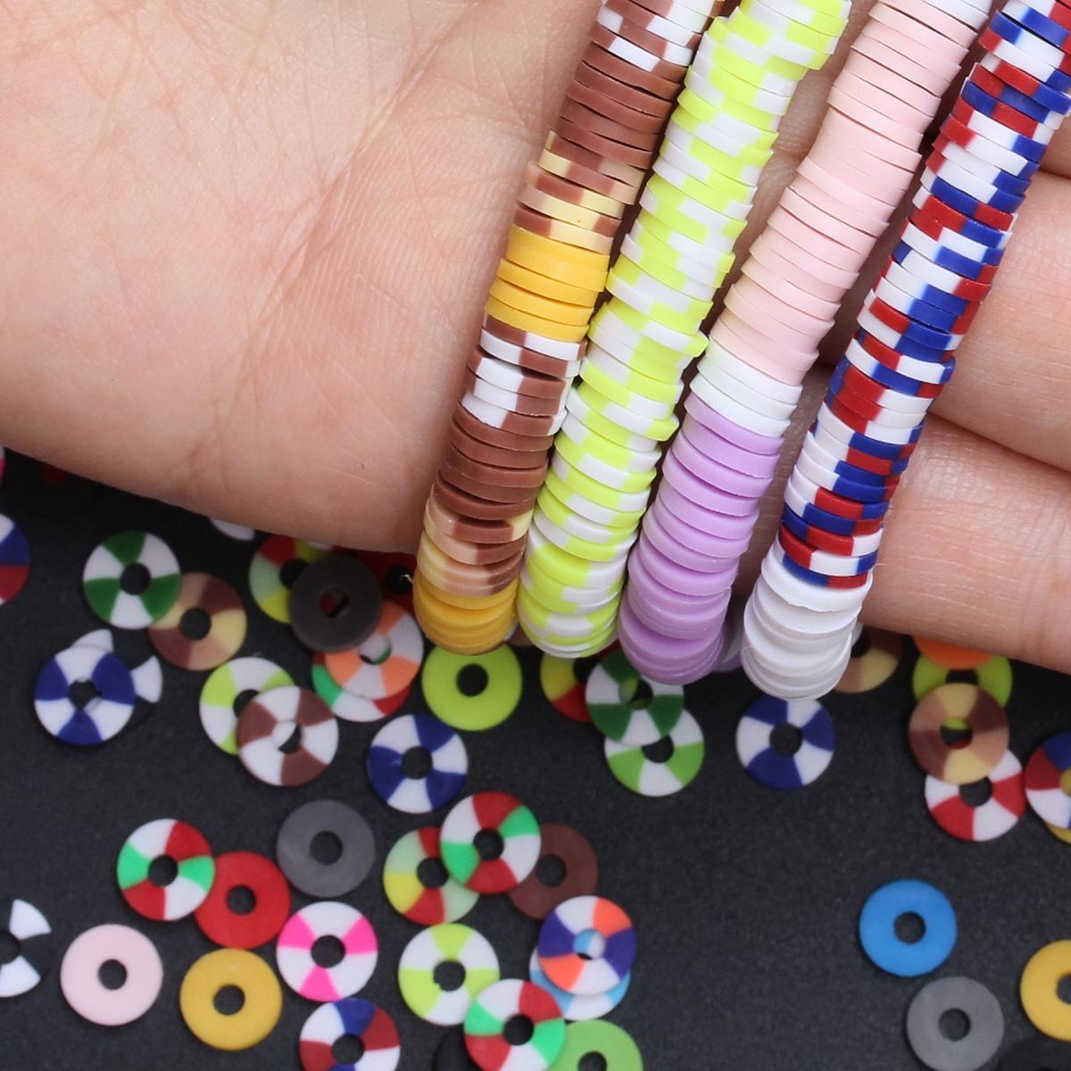 Create beautiful friendship bracelets with this set of polymer clay beads. The flat beads are perfect for crafting unique bracelets and jewelry pieces.