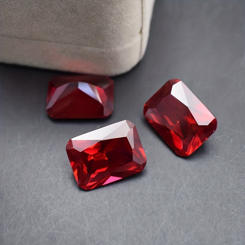 Add a touch of elegance to your outfit with these stunning radiant cut artificial ruby accessories. Perfect for birthdays or holidays.
