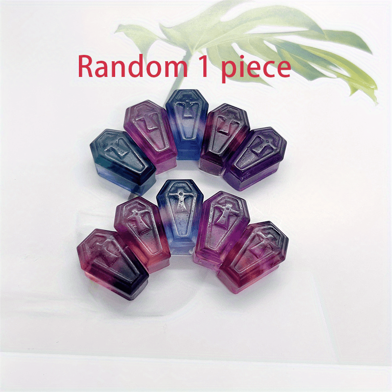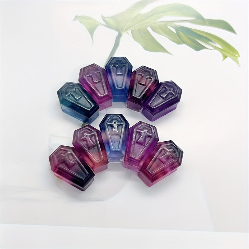 • Handcrafted Rainbow Fluorite Coffin Carving