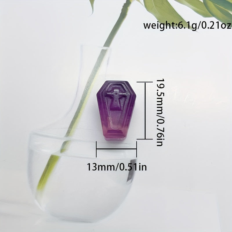 Enhance your home decor with this unique Rainbow Fluorite Coffin Carving. Handcrafted from natural stone, it brings healing energies and aesthetic appeal.