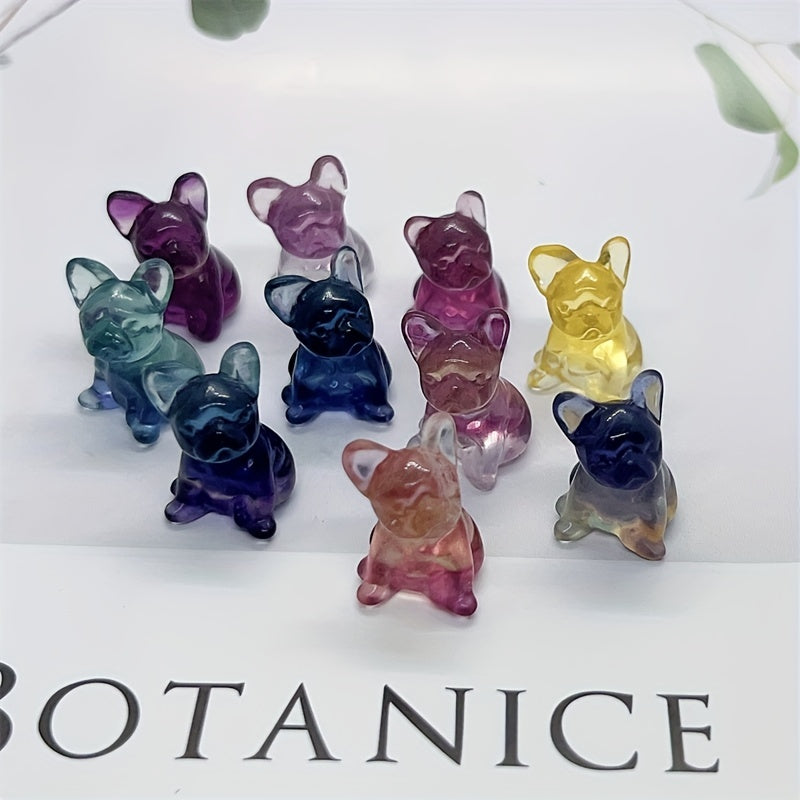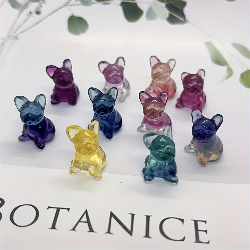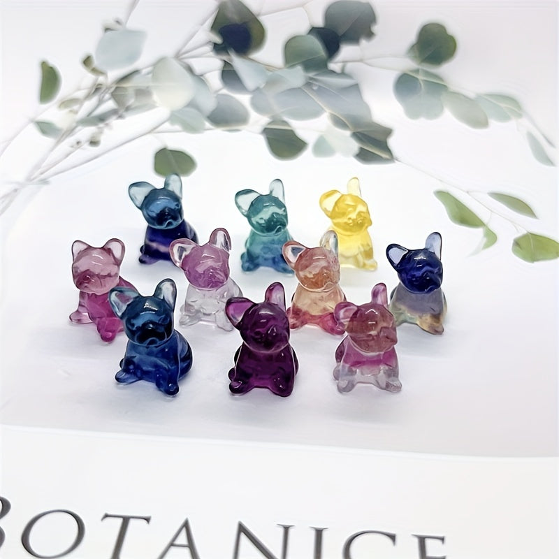 This stunning rainbow fluorite dog crystal craft is a colorful and elegant addition to your home decor. Handcrafted with natural rainbow fluorite, it brings a sense of healing and positive energy to any space.