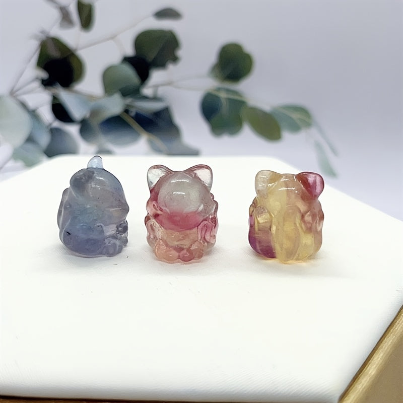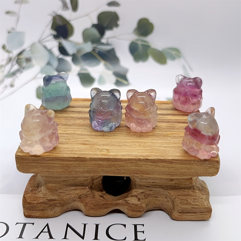 This lovely mini carving features a Nine Tailed Fox made from Rainbow Fluorite. Perfect for decoration and healing crystal use.