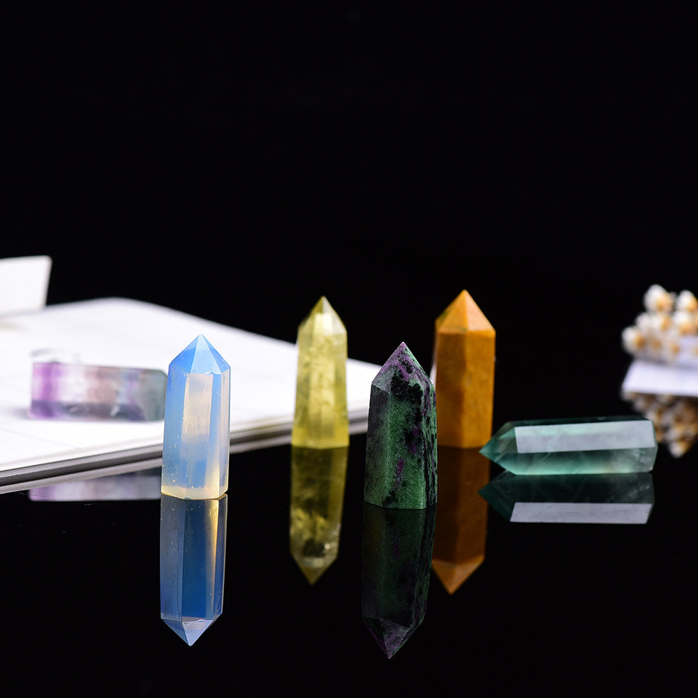 Rhinestone Gradient Glass Pendant Necklace Double Pointed Hexagonal Prism