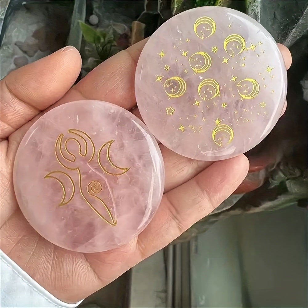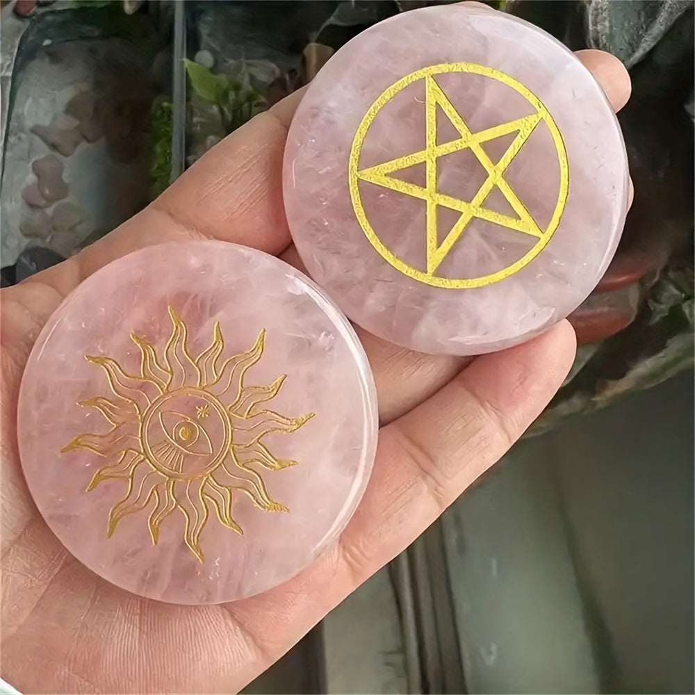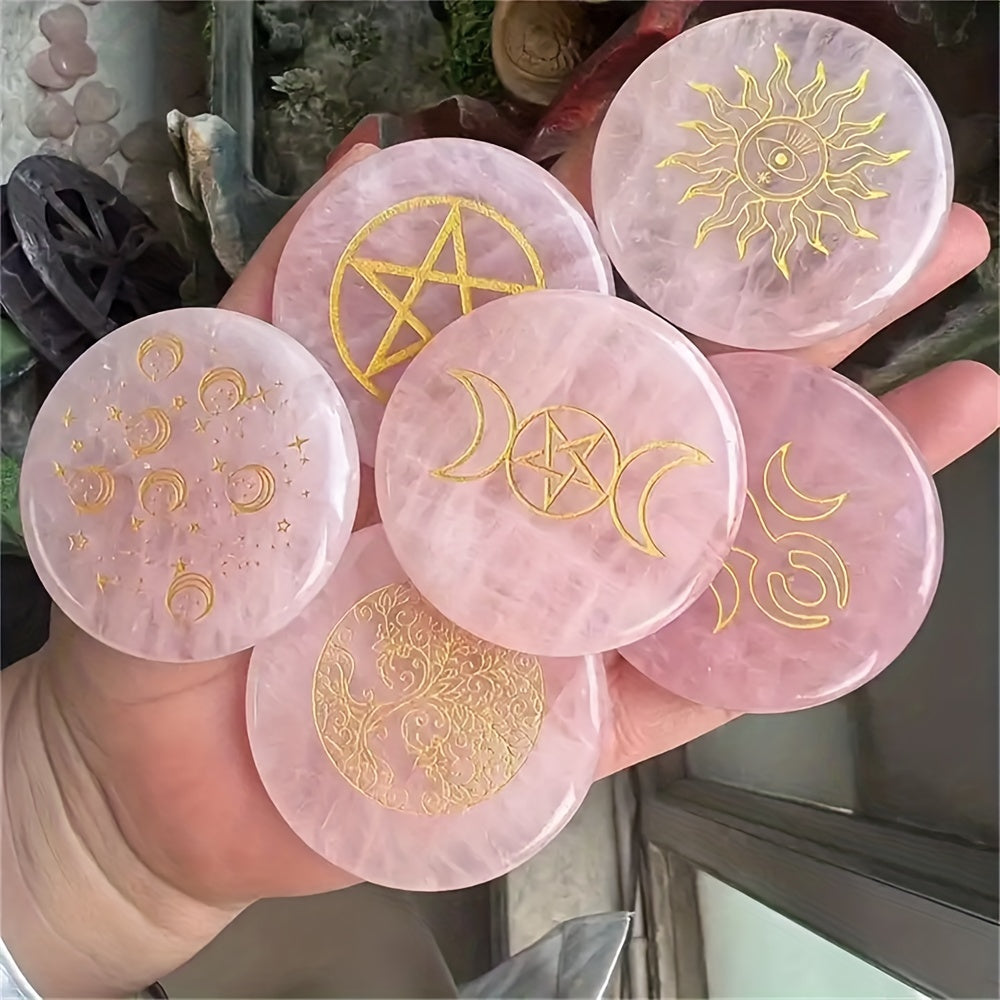 Enhance your home desk decor with this diameter healing crystal round coaster made from rose quartz. Perfect for divination craft and adding a touch of elegance to your space.