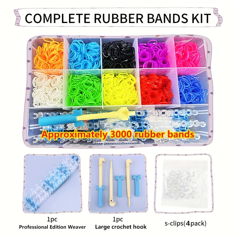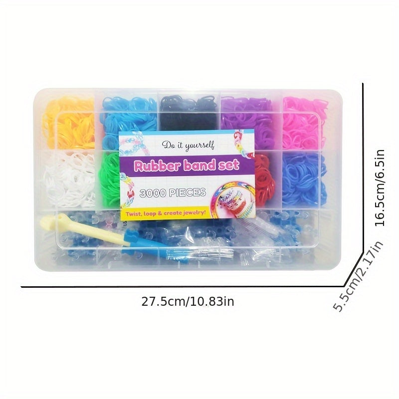 Create endless bracelet designs with this reusable rubber band bracelet making kit. Perfect for all four seasons, this kit includes 15 grids box with 3000pcs of rubber bands. Ideal for crafts and DIY projects.