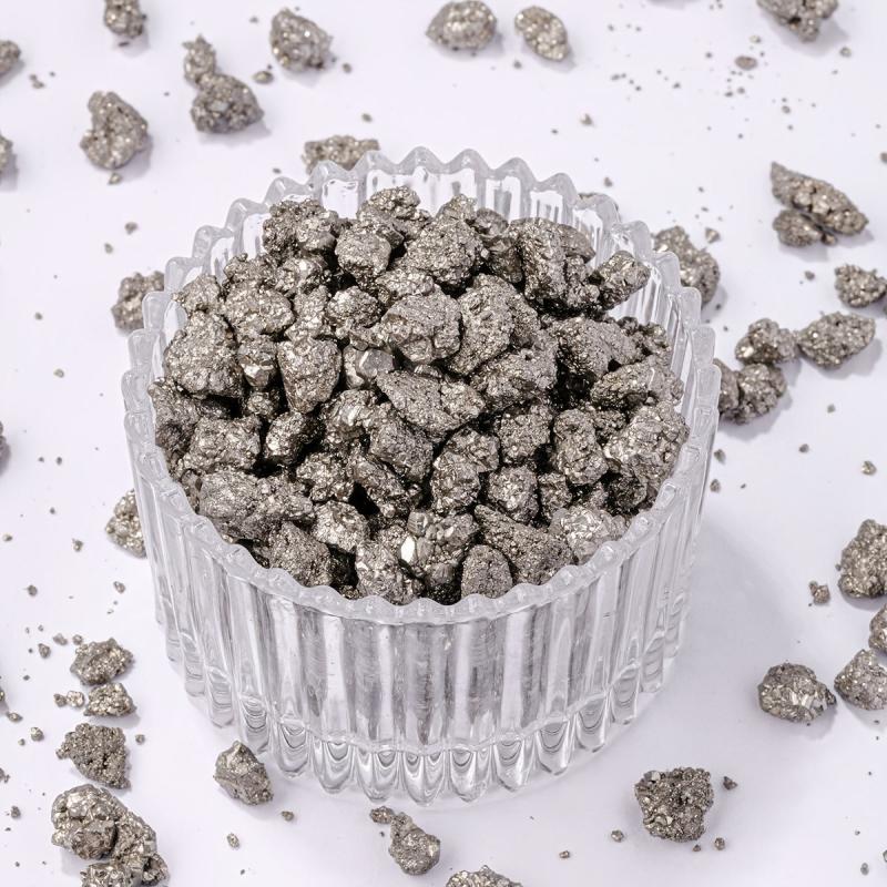 Enhance your jewelry making with these raw pyrite chips. Ideal for DIY crafts, Reiki practice, or decorative displays in clear glass.
