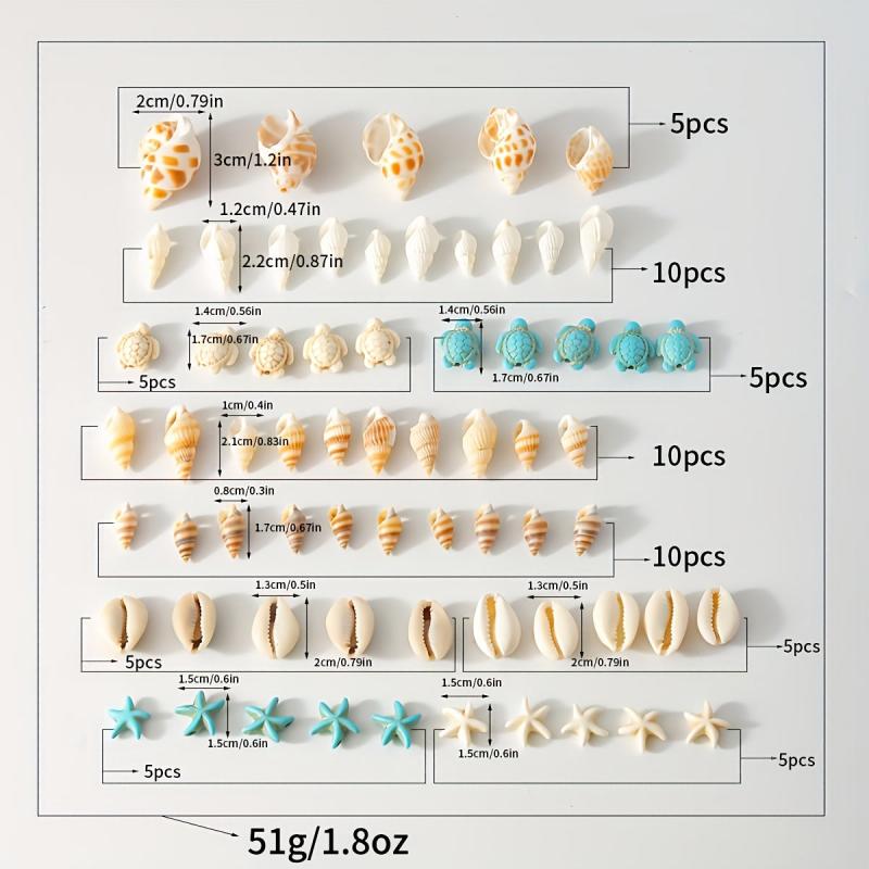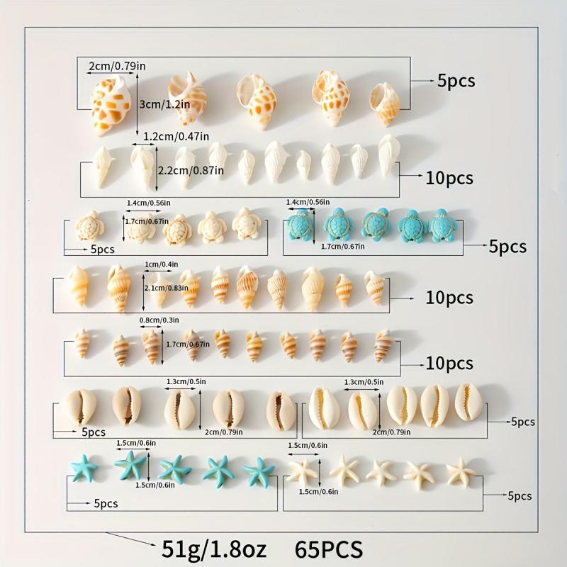 Enhance your DIY projects with these 65pcs, 104pcs, or 200pcs of shell, sea snail, starfish, and turtle pendants. Perfect for creating unique bracelets, ankle chains, necklaces, or decorating fish tanks and aquariums.