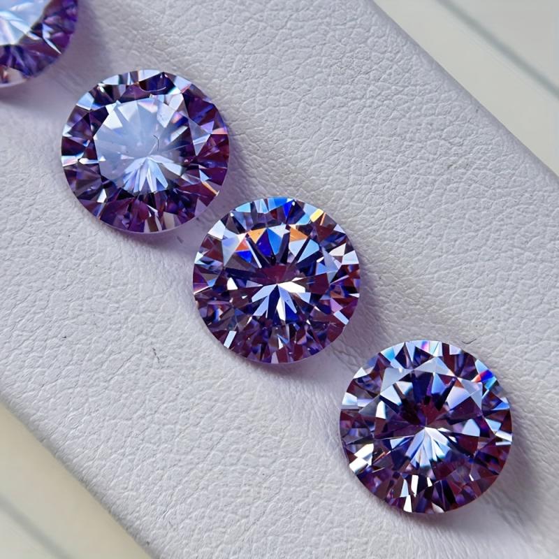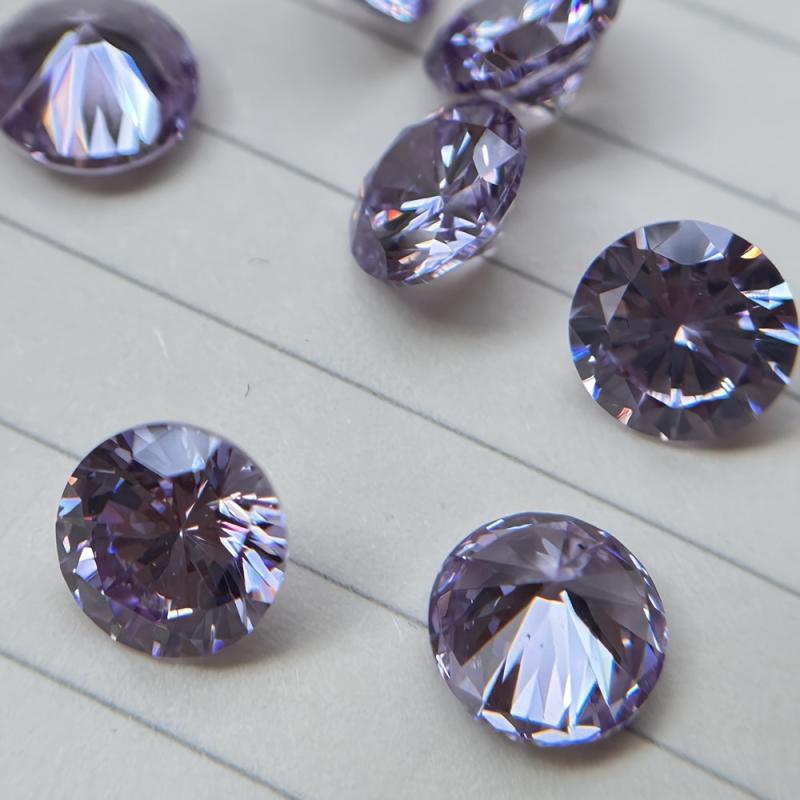 This round cut top quality lavender cubic gemstone is ideal for creating unique accessories. It sparkles beautifully and is made from high carbon synthetic material.