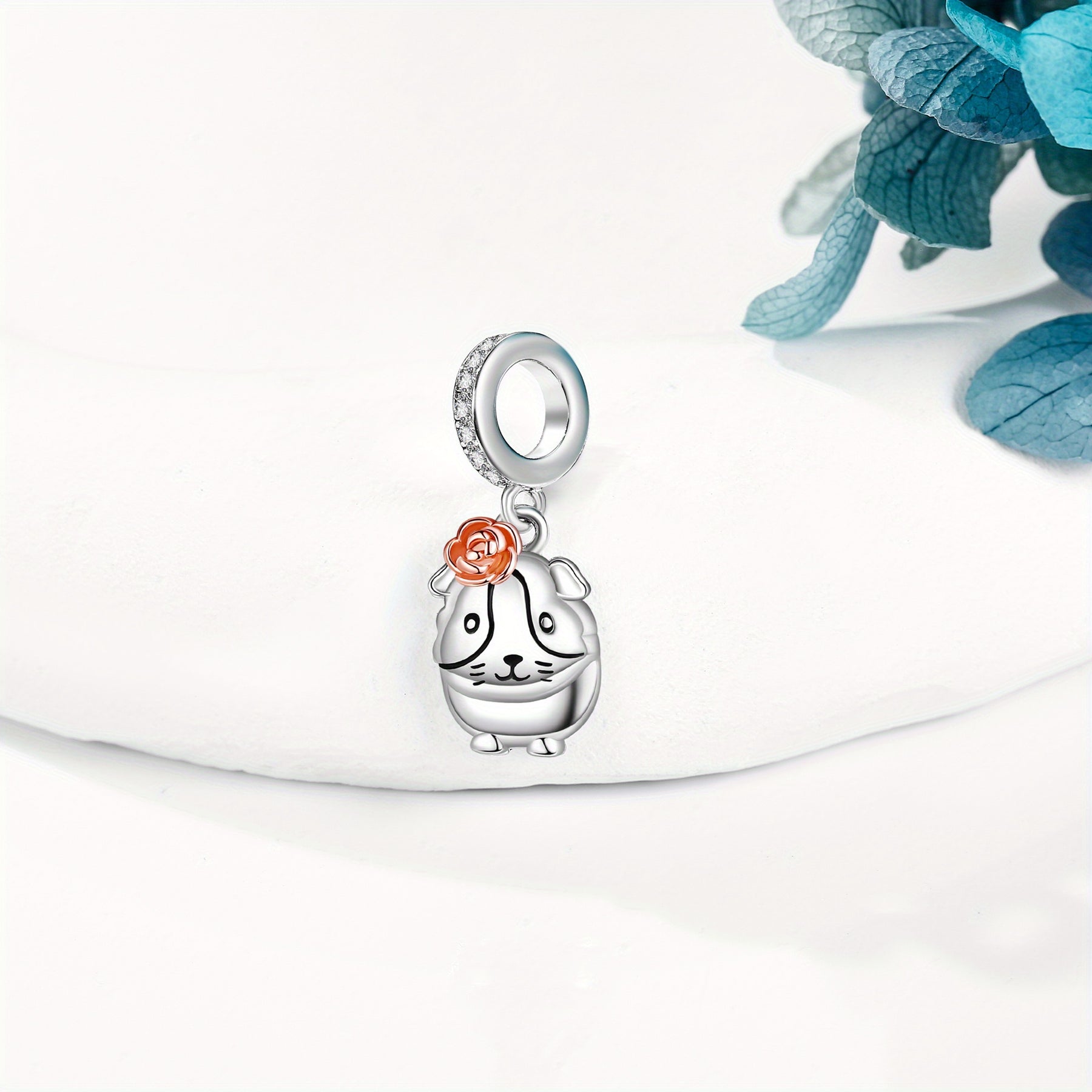 Add a cute touch to your jewelry collection with this sterling silver guinea pig charm bead. Compatible with charm bracelets and necklaces, this dangle pendant is a must-have for guinea pig lovers.
