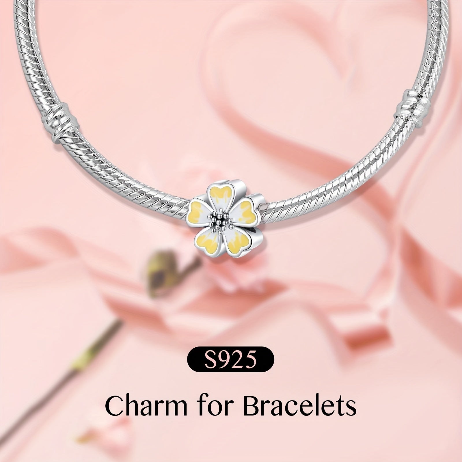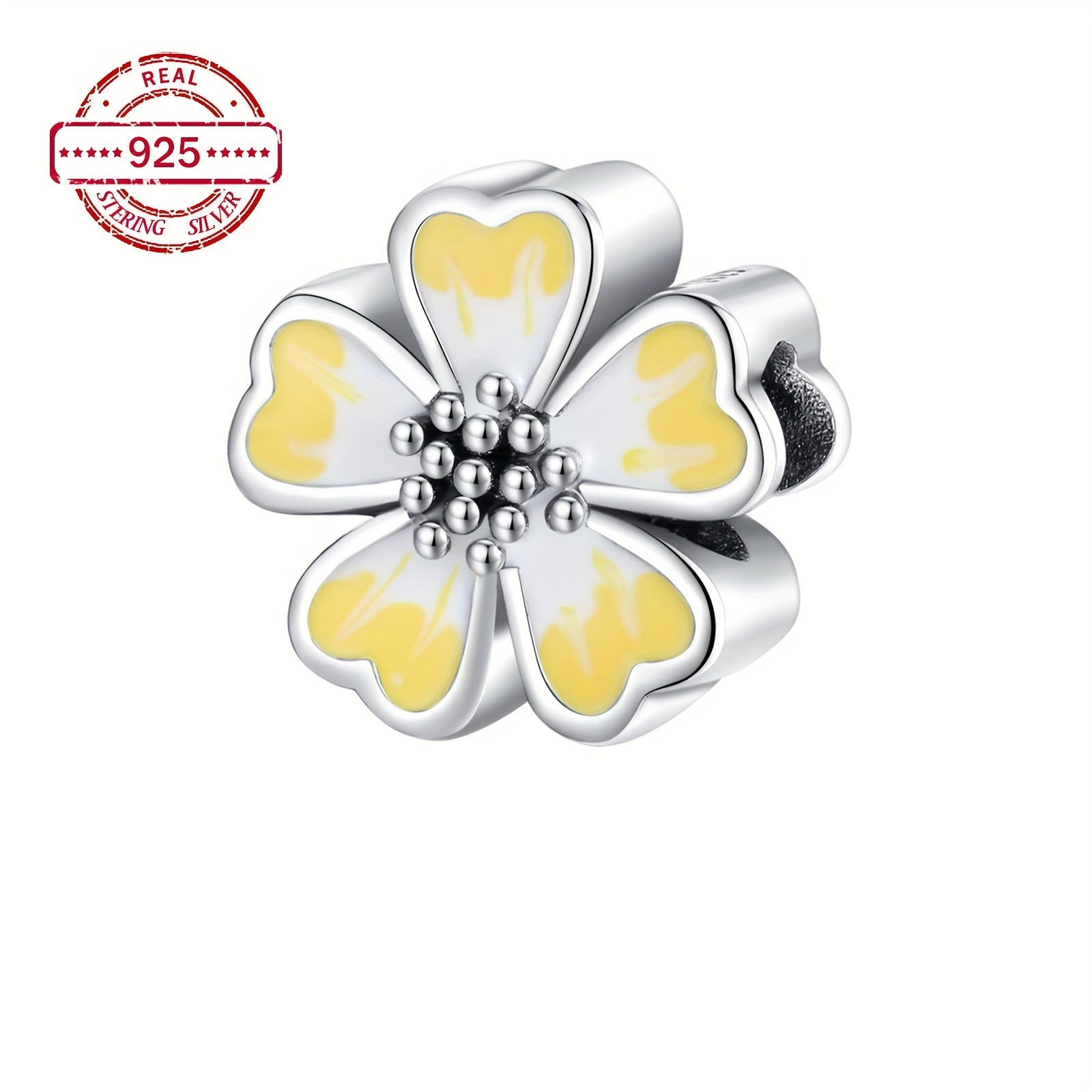 This beautiful charm pendant is made of S925 sterling silver and features a yellow pansy flower design. It is compatible with women's European moment bracelets and necklaces, making it a perfect gift for DIY jewellery making.