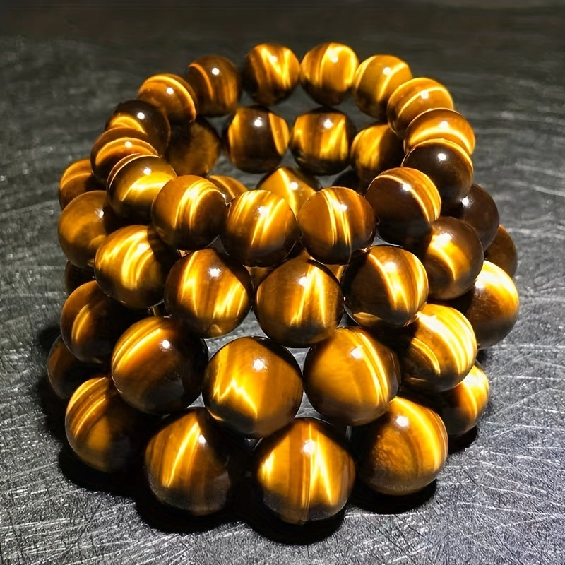 This natural Tiger Eye stone bracelet features good luster and high quality with various sizes of 6mm, 8mm, 10mm, and 12mm beads. A perfect addition to your crystal collection and yoga practice.