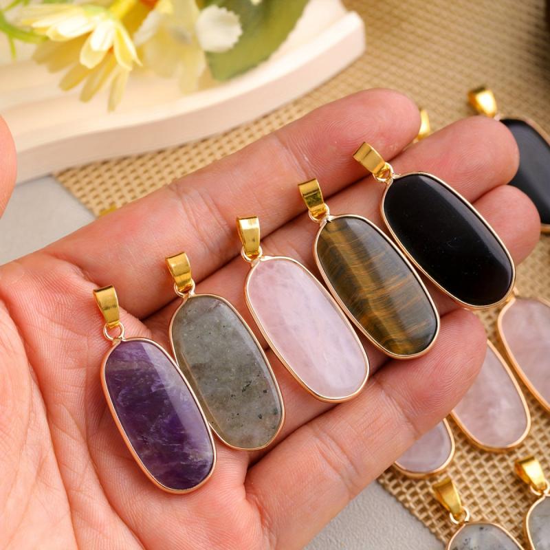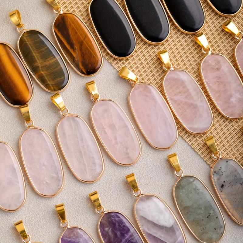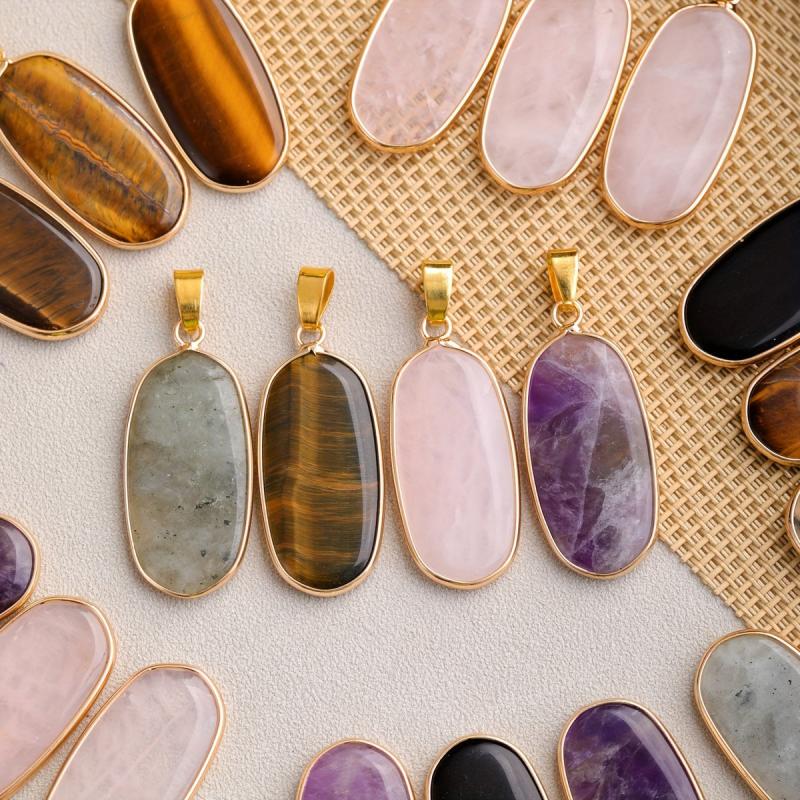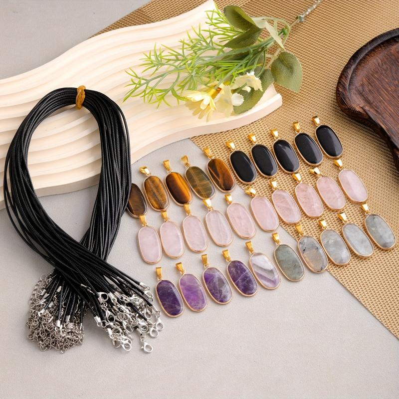 Create your own unique jewelry with this set of 15 oval Tiger's Eye pendants on chains. Mix and match with crystals of different materials for a personalized look.