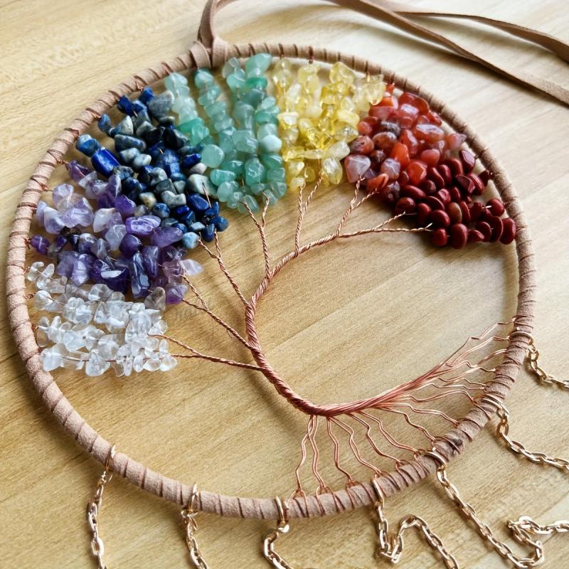 • Tree of Life dream catcher with chakra agate slices