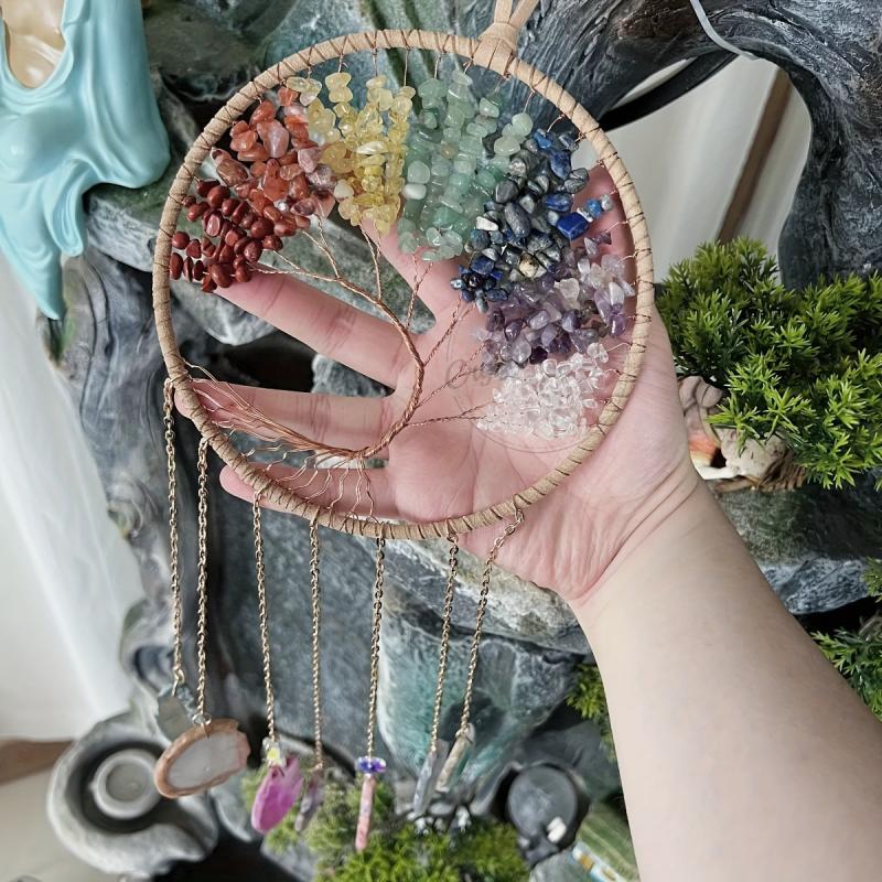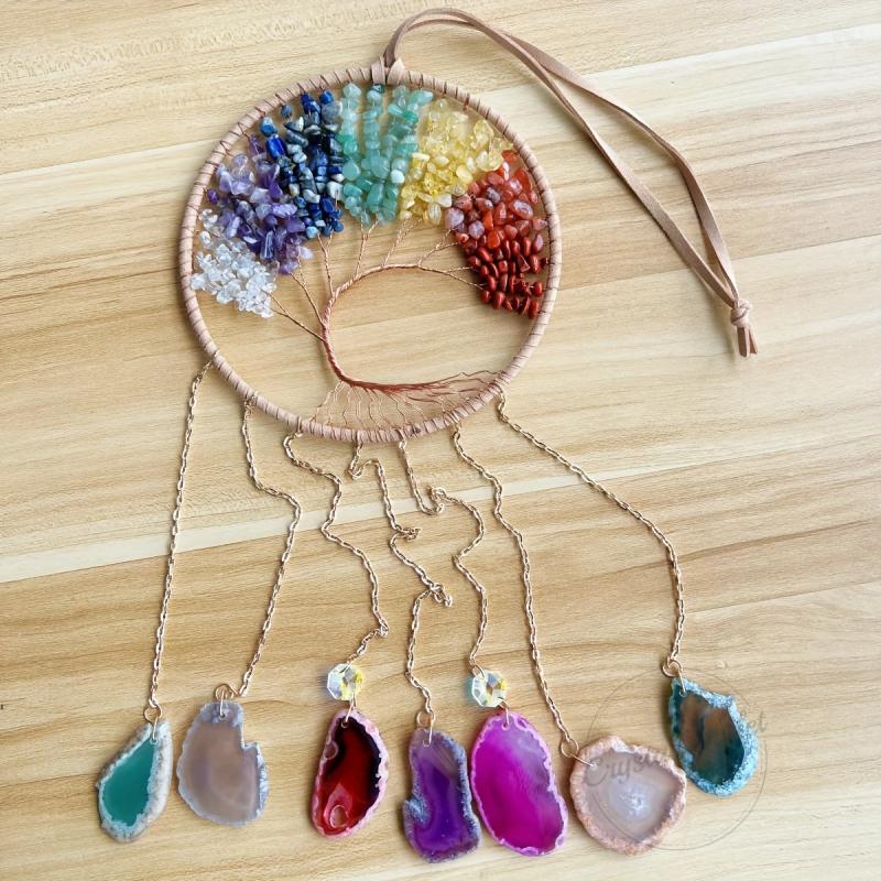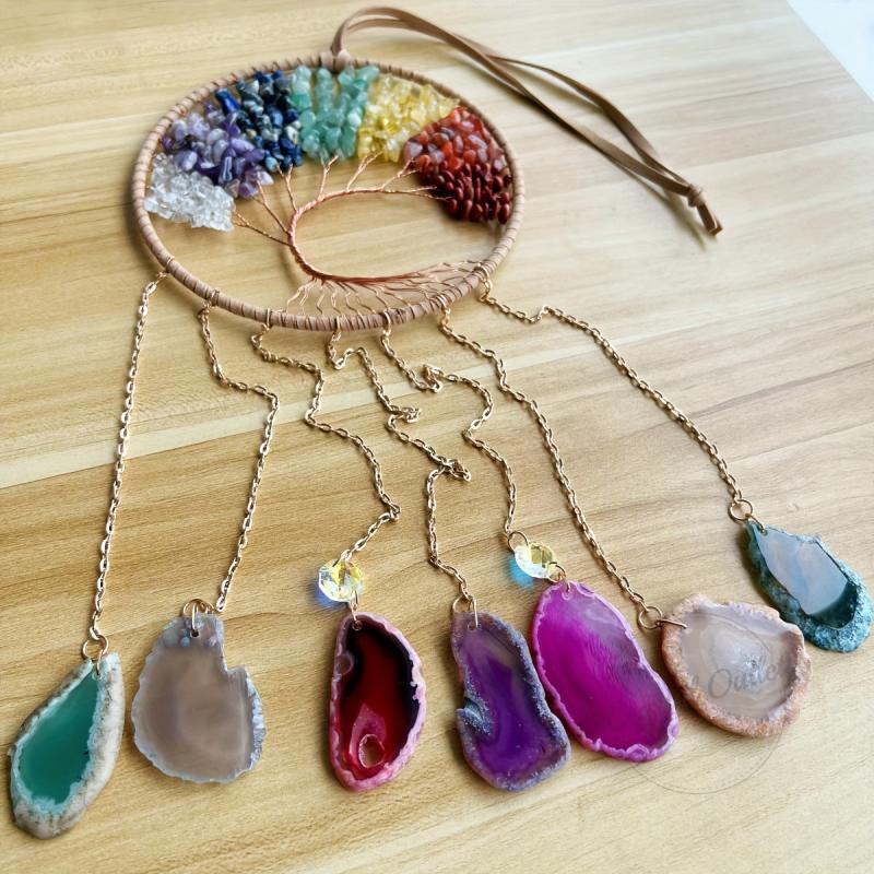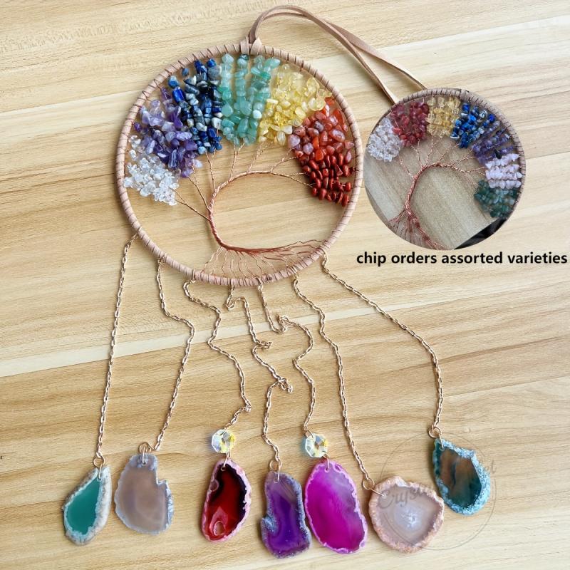 Tree of Life Dream Catcher Chakra Agate Slices Wind Chime Rock Home Decor