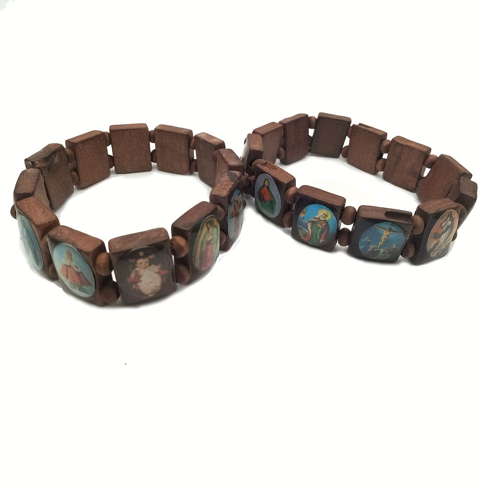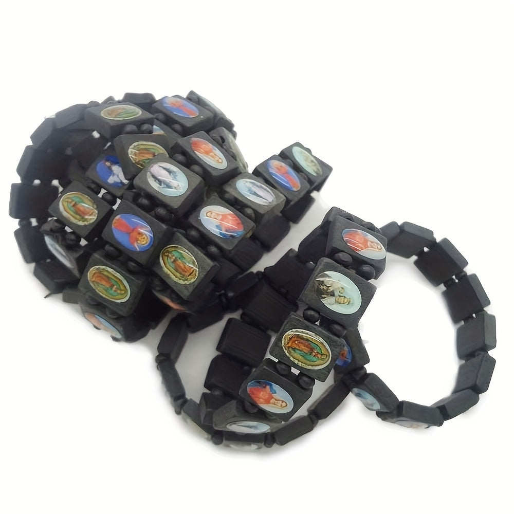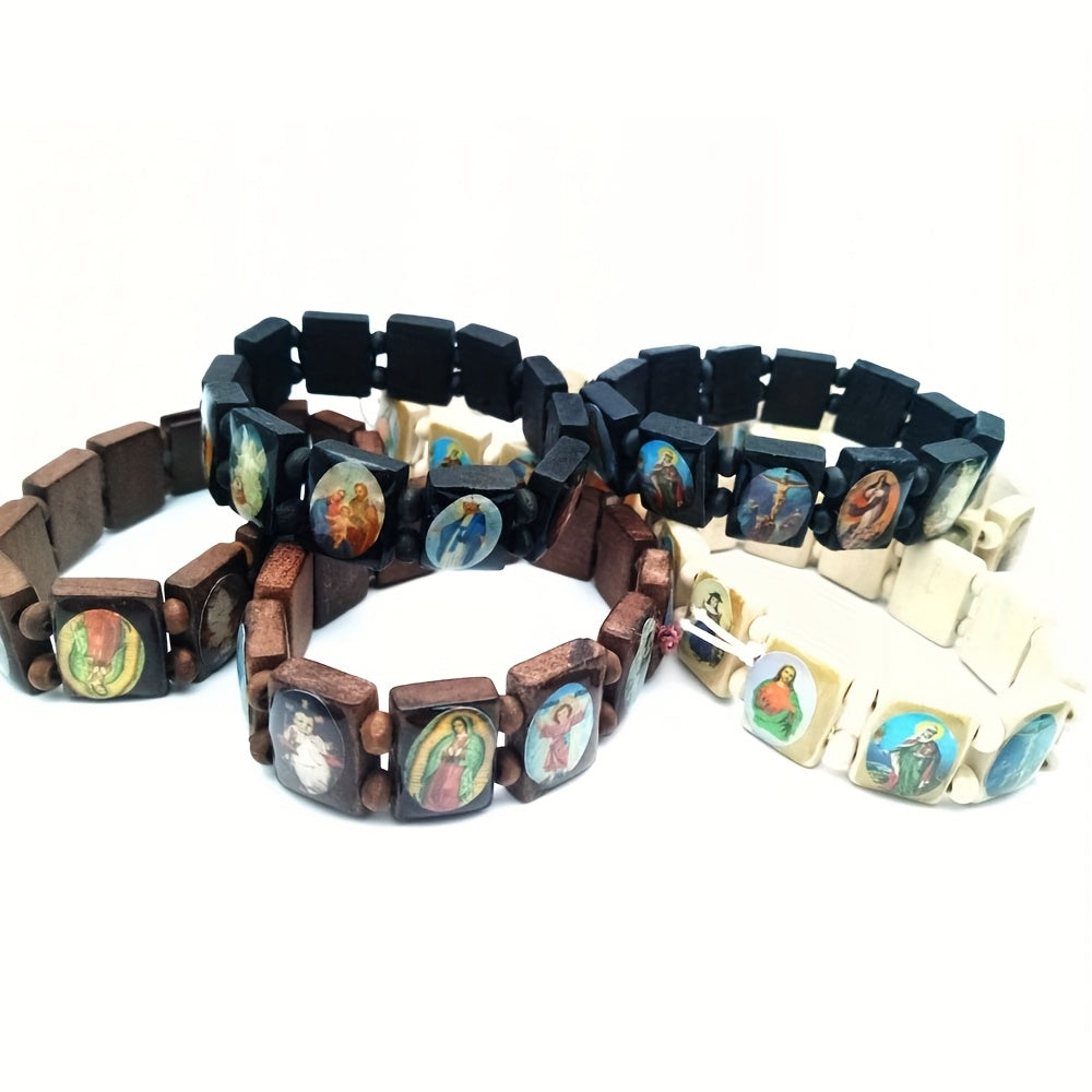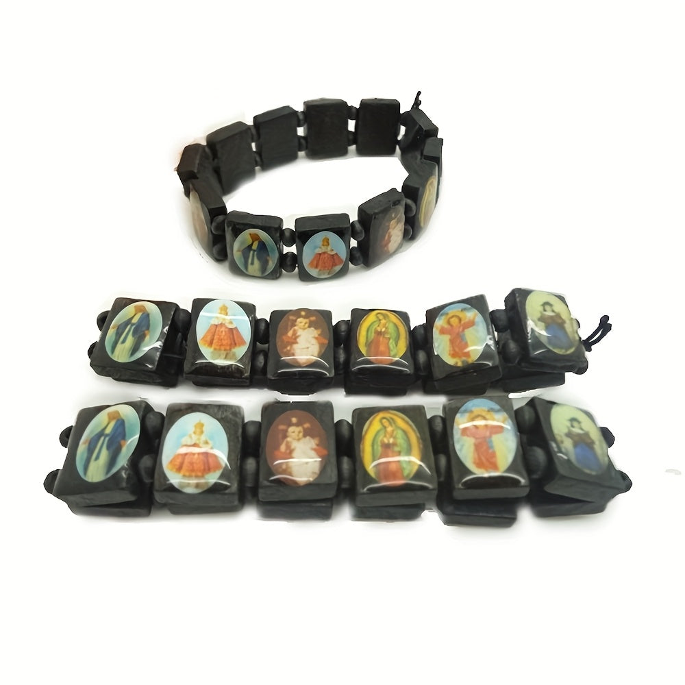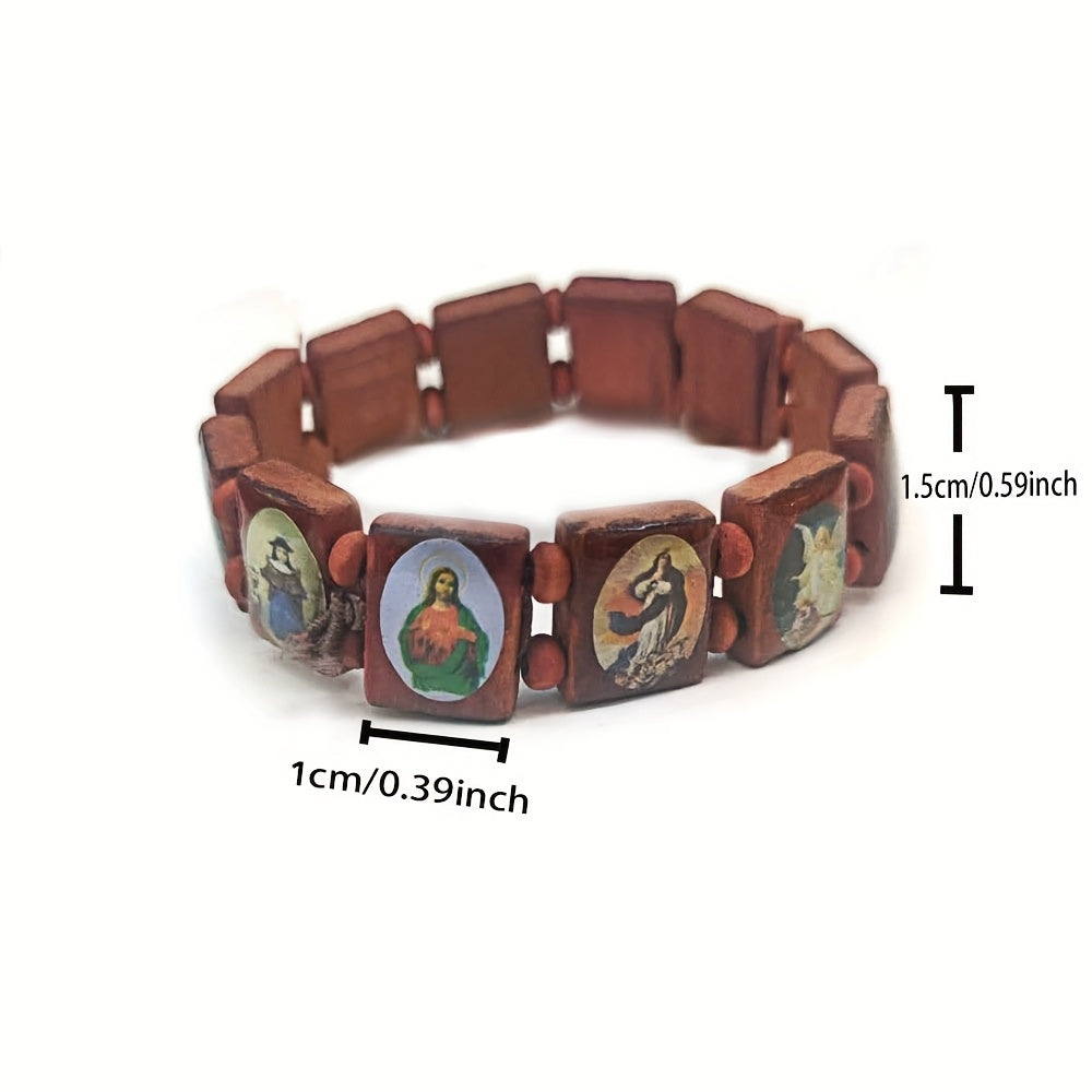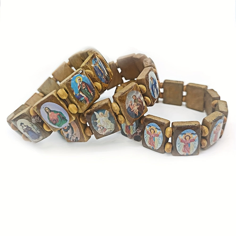 This wooden rosary features colorful resin medals of Jesus, Virgin Mary, and angels. Perfect for Catholic devotion and prayer.