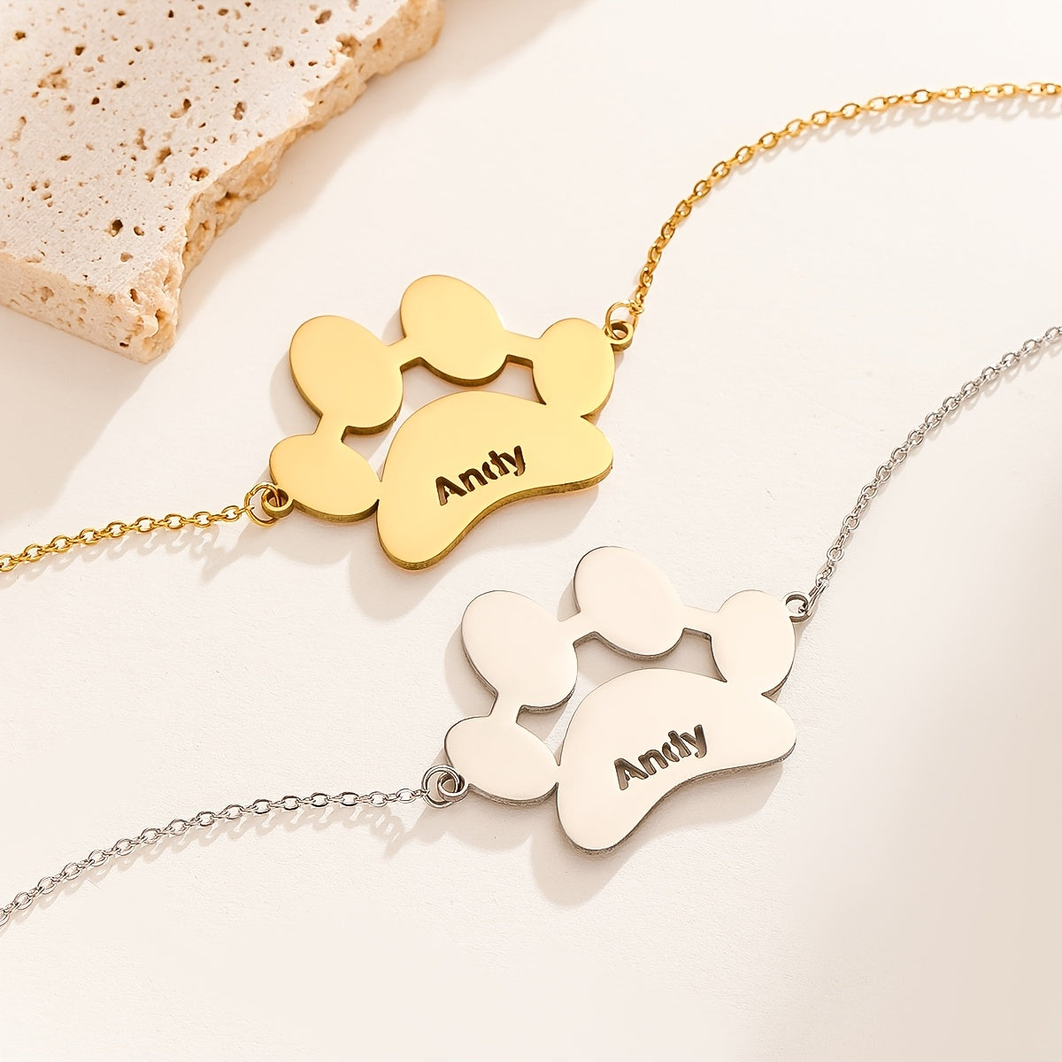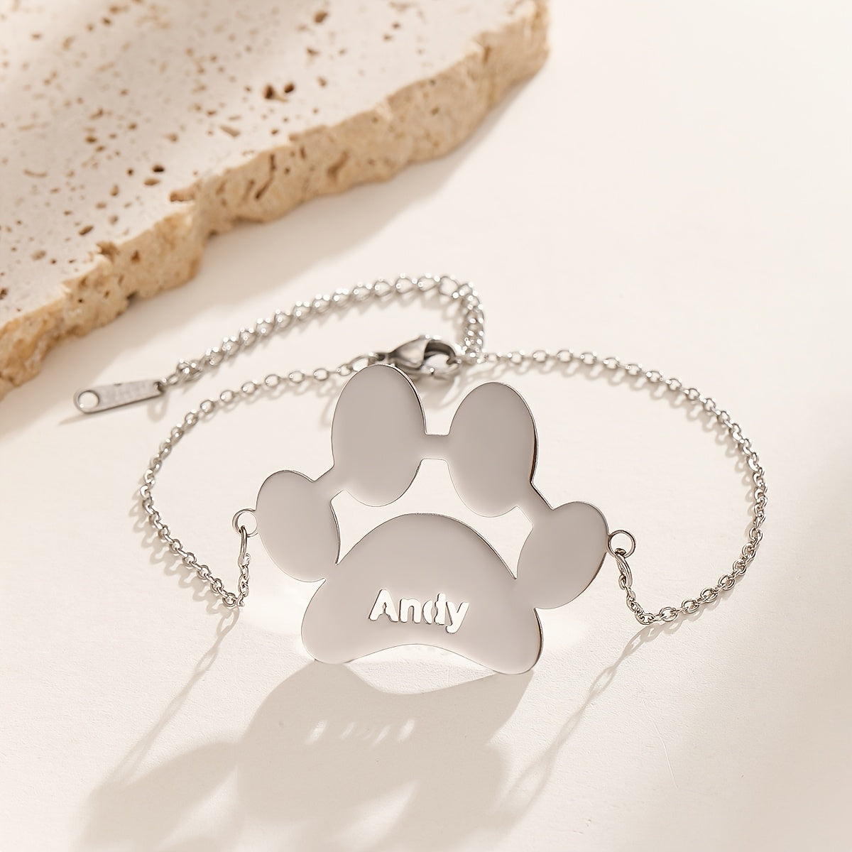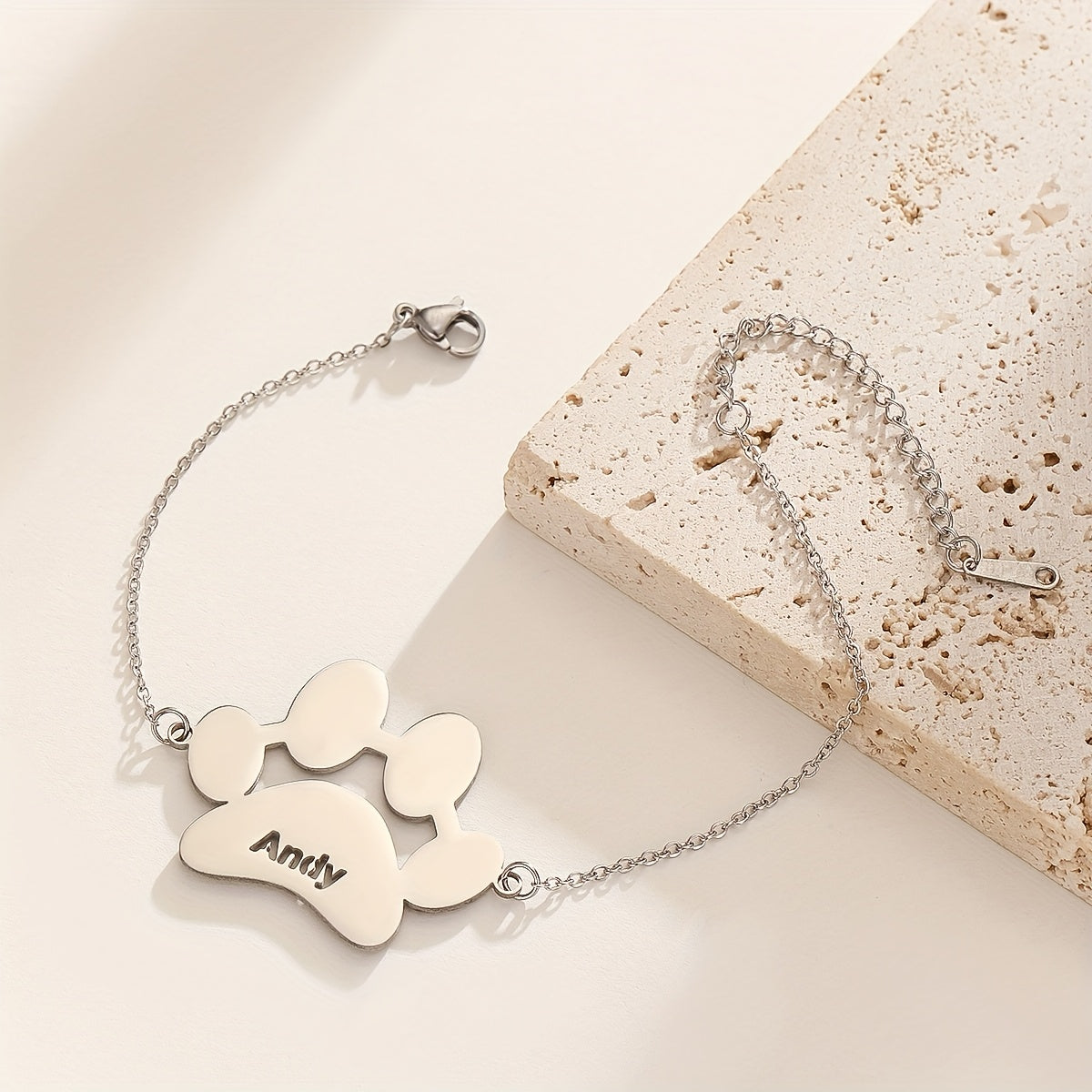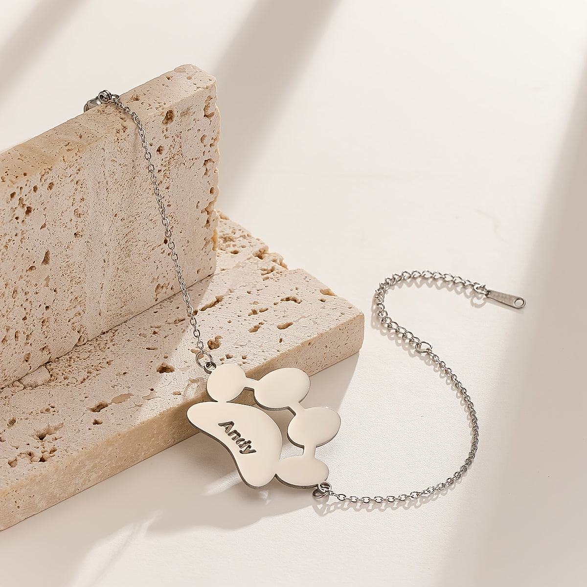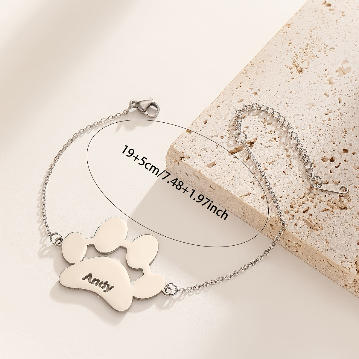 Cherish your furry friend with this stylish bracelet featuring paw print and customized name. Made from high-quality stainless steel, this accessory is perfect for daily wear or vacation. Ideal gift for pet lovers and moms on Christmas.
